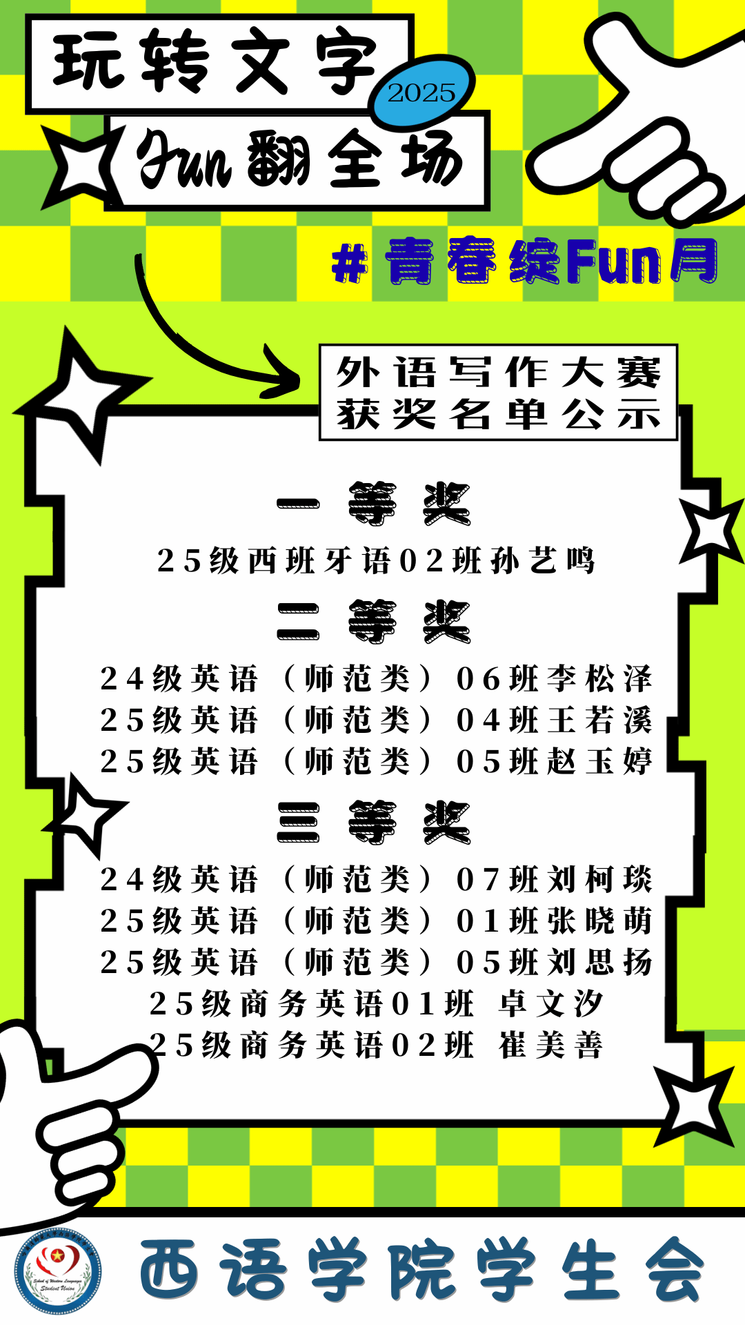 当笔尖与校园趣事相遇,当外文与生活温度碰撞,我们曾收到无数份满含创意的文字答卷——有人用英语记录食堂窗口的烟火气,有...