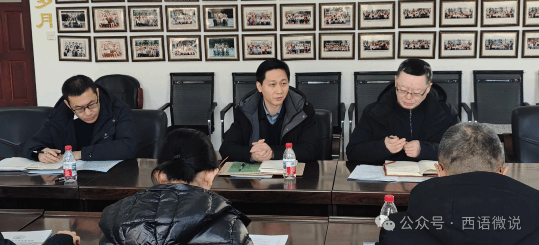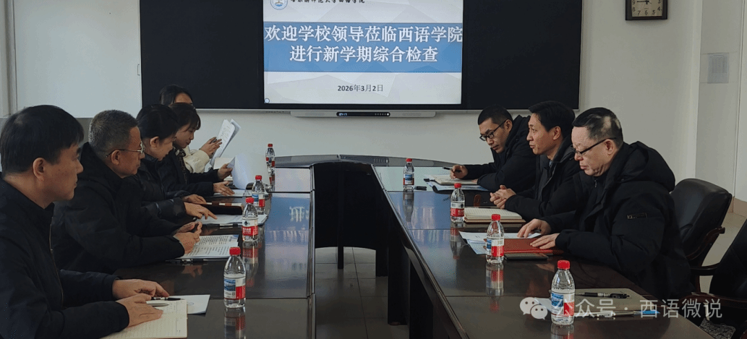 课后,检查团与西语学院管理团队召开座谈会,西语学院院长顾世民就新学期教学准备工作、课程建设和专业调整优化、研究生教育、学科建设、大学英语教学、寒假期间工作、学生返校及校园安全排查、十五五规划调研和起草等工作作专题汇报。