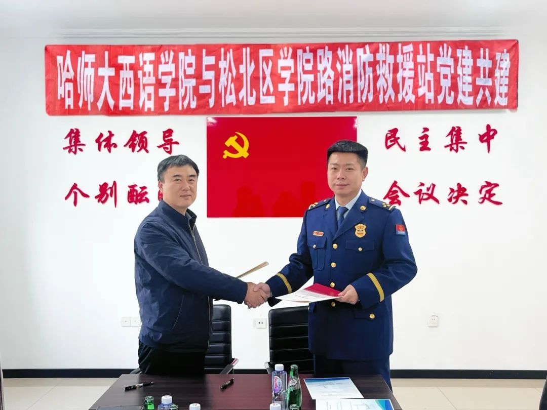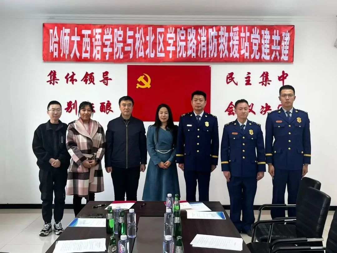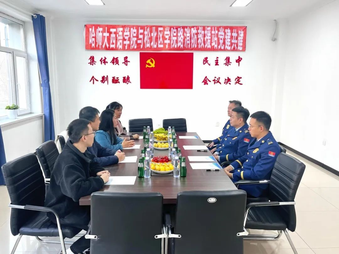 为深入贯彻落实新时代党的建设总要求,进一步探索党建创新,2024年11月9日下午,西语学院党委与松北区学院路消防救援站开展党建共建活动。西语学院党委书记王羽、党委副书记吕会庆、团委书记徐伟伟、本科生第三党支部书记蒋雨材以及消防救援站政治指导员张玉清、救援站站长艾赓滨、救援站副站长陈达出席会议。