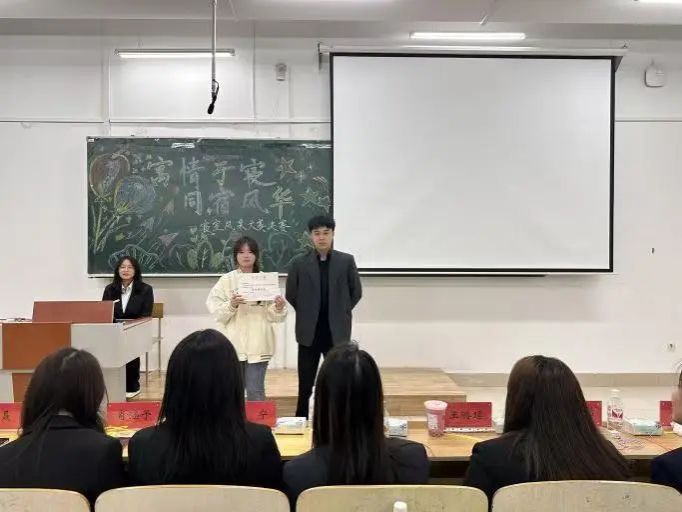 由创新创业协会主席聂灿为获奖寝室颁奖