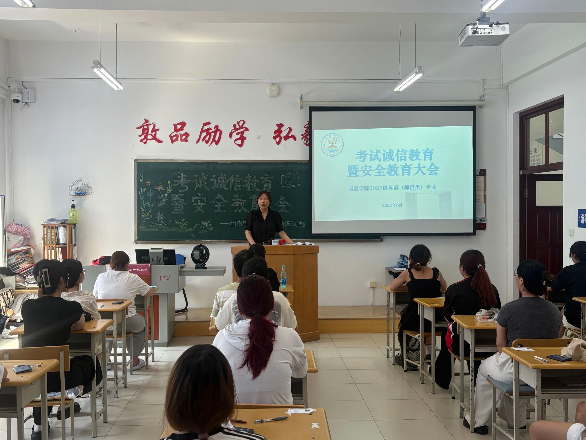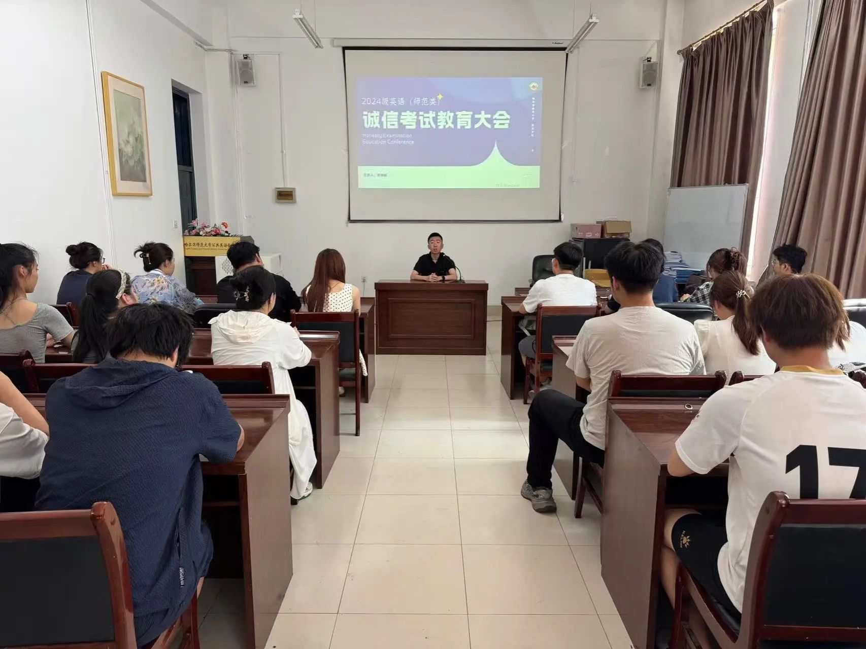 为深入贯彻落实我校《大学生思想政治教育“112349”工作模式实施方案》,严肃考风考纪,筑牢纪律防线,助力学生平稳备考、诚信应考,西语学院辅导员在学期末分年级分专业召开了诚信考试教育暨安全教育大会。