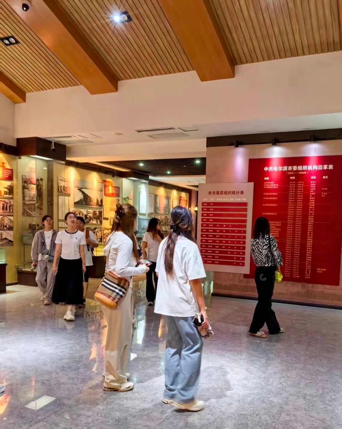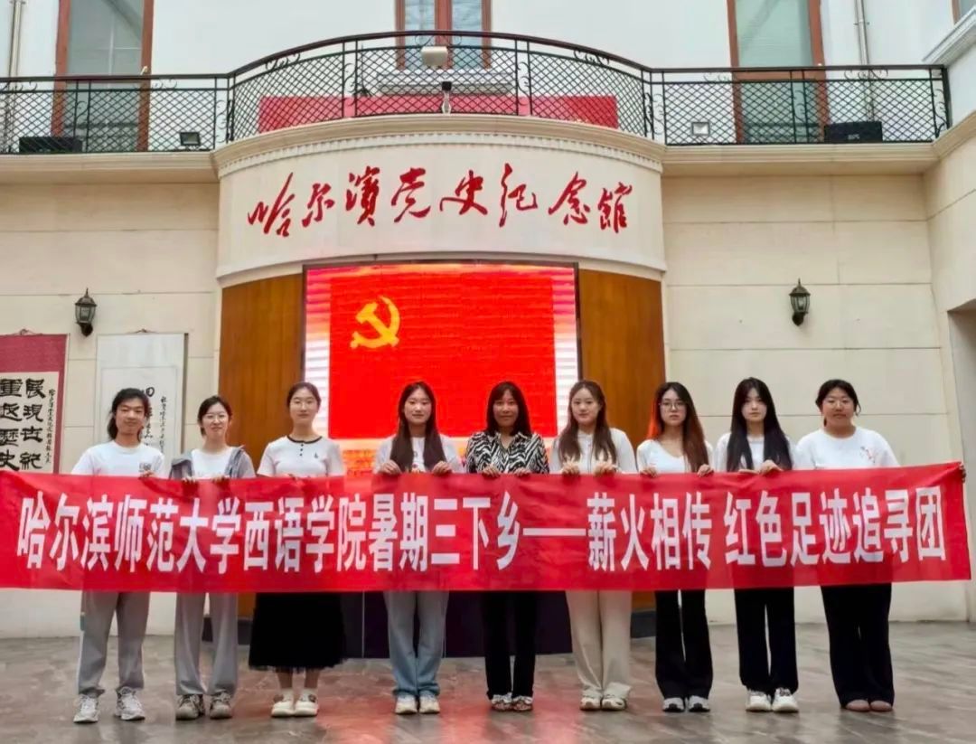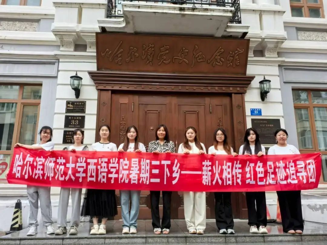 为深入学习贯彻习近平新时代中国特色社会主义思想,传承红色基因,厚植家国情怀。西语学院“薪火相传 追寻红迹”实践团在指导教师徐伟伟的带领下,于7月20日组织开展“探寻红色足迹,传承党史薪火”三下乡实践活动,走进哈尔滨党史纪念馆,在沉浸式学习中感悟党的奋斗历程,汲取奋进力量。