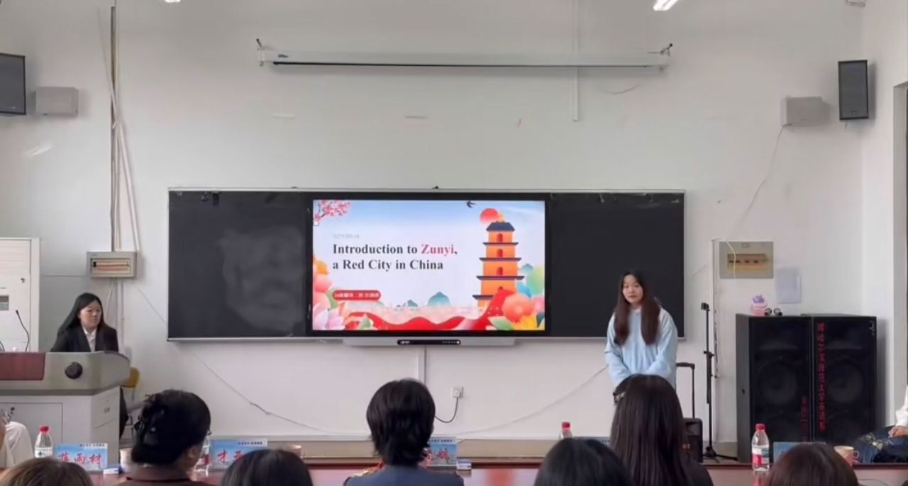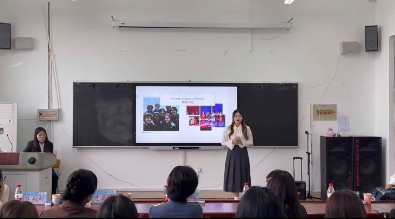 23级英语师范10班的葛人赫同学率先登场,以“中国传统文化”为主题,用流利的英语带领大家领略了中华文化的深厚底蕴,从古老的哲学思想到璀璨的艺术瑰宝,娓娓道来,引人入胜。