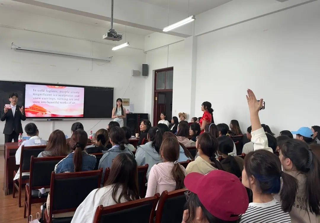 24级英语师范3班的杨佳怡同学带来“冰雪文化”分享。她生动讲述了冰雪运动在中国的发展历程,以及冰雪文化背后所蕴含的坚韧与拼搏精神,让大家对冰雪世界有了更深入的认识。