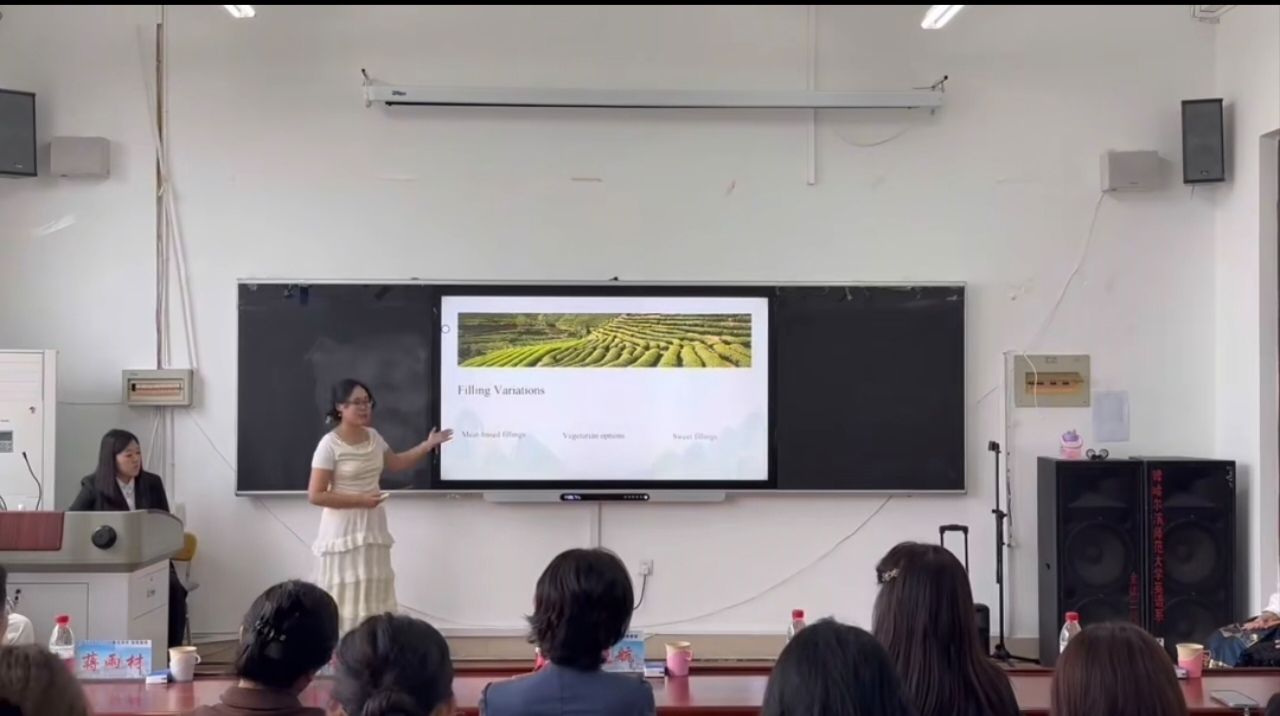 24级英语师范5班的刘赫同学带来“中国美食”主题分享。他热情洋溢地介绍了中国各地的特色美食,通过刘赫同学生动的描述与介绍勾起了大家的味蕾记忆,也传递出中国饮食文化的丰富与多元。