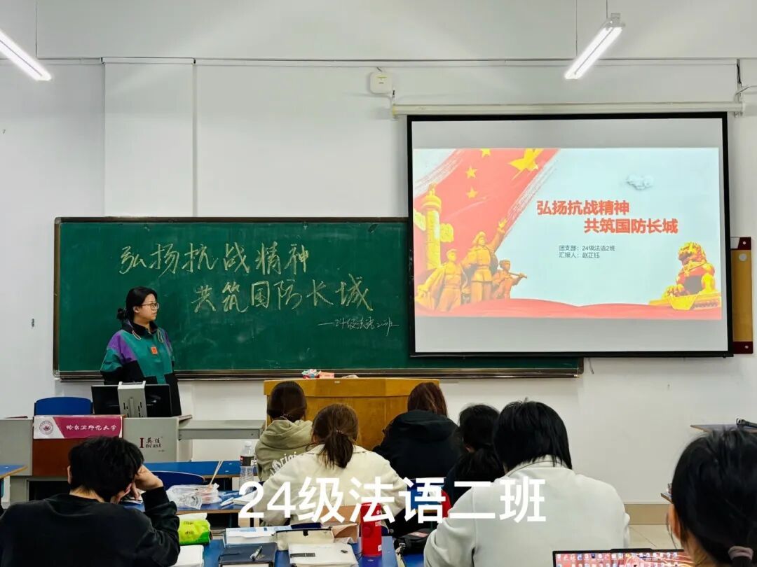 在此次主题团日活动中,西语学院各团支部以“抗战与国防”为基石,将国防教育、红色教育与专业教育有机融合,引领团员青年以专业为纽带,共绘保卫国防的新篇章,凝聚起西语学子勇于担当、传承使命的青春共识与磅礴力量。