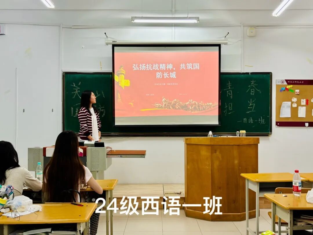 为深入学习贯彻习近平总书记关于深化全民国防教育的重要论述,积极响应开展“2025年全民国防月”活动的号召,西语学院各团支部于2025年9月27日积极开展“弘扬抗战精神,共筑国防长城”国防教育主题团日活动,各支部积极参与。