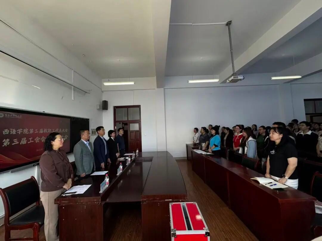 为了推进民主建设,发挥“双代会”的重要作用,按照《中国工会章程修正案》、《哈尔滨师范大学教代会实施办法》和《哈尔滨师范大学第八届教职工代表大会第十一届工会会员代表大会筹备工作方案》等文件的布置要求,西语学院于2025年9月26日召开了第三届教职工暨工会会员大会。学校工会常务副主席杨世君出席会议指导工作、学院领导班子成员、全体会议代表参加了本次会议,会议由党委书记李晓航主持。