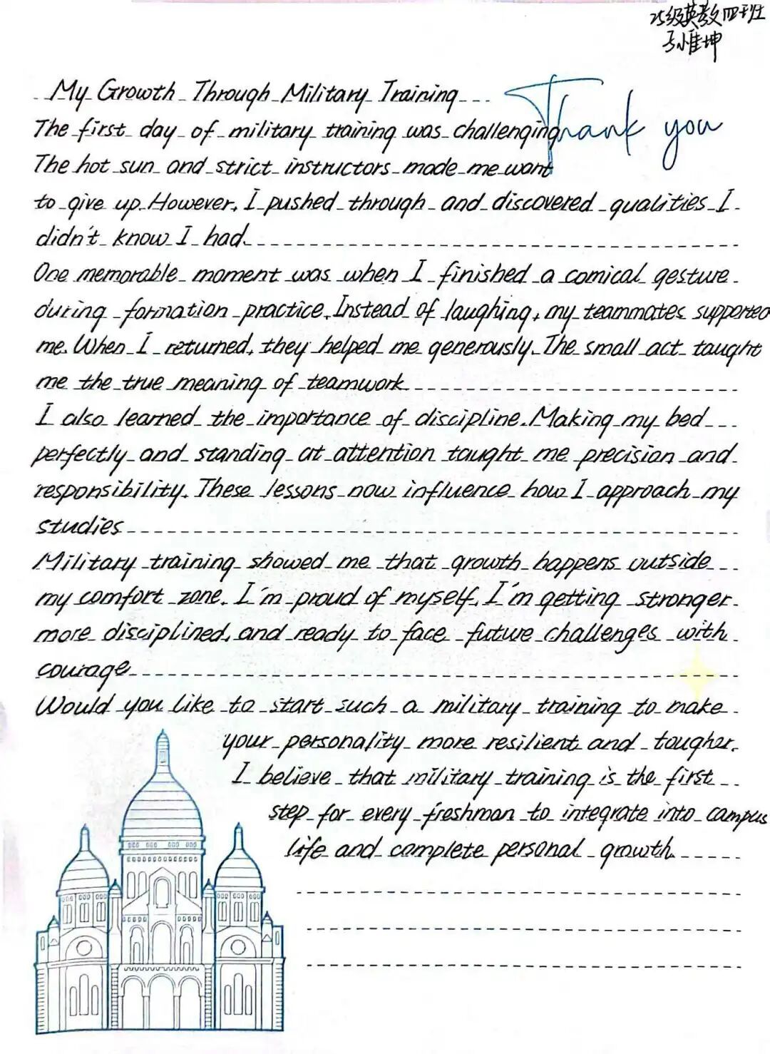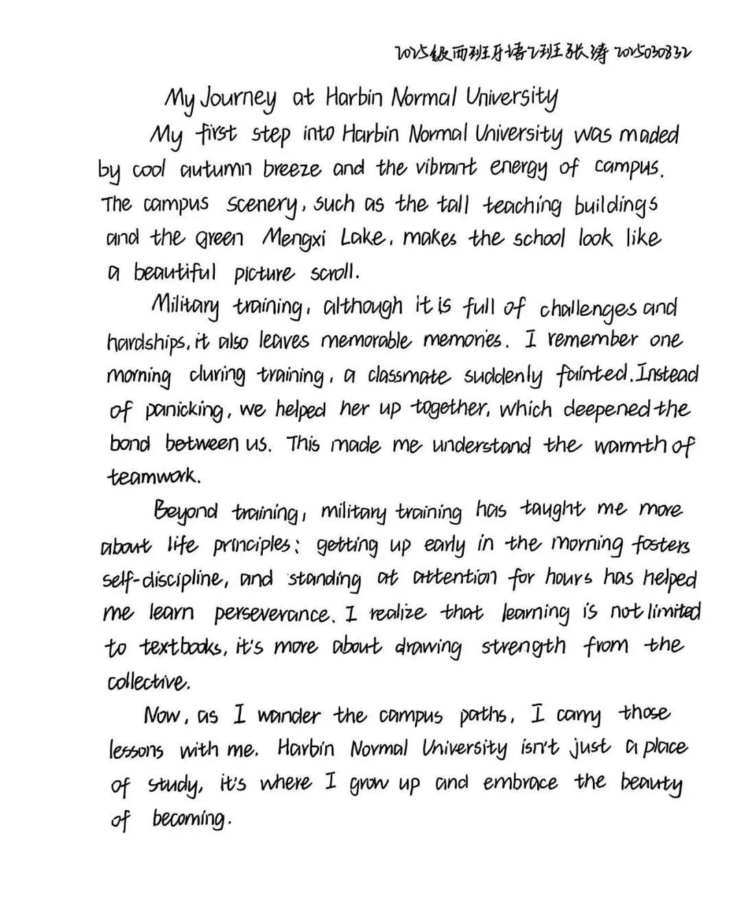 接下来让我们一同走进赛道一英文写作的精彩世界,欣赏西语学子用英文笔触描绘的军训故事与青春感悟。