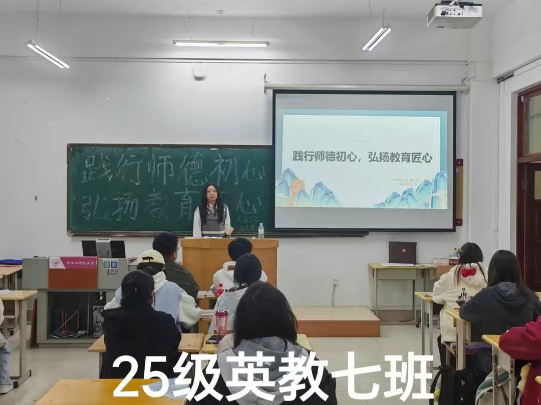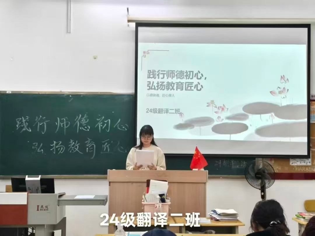 同时各班团支部围绕“新时代西语学子如何传承与践行师德精神”展开热烈讨论。同学们纷纷表示,作为西语专业学子,既要以教师为榜样锤炼扎实的语言功底,更要传承其“用语言架桥、用文化暖心”的育人精神——未来若走上讲台,要成为传递中西文化的教育者;若从事翻译、外交等工作,也要以师德为标尺,在国际交流中坚守初心、传递正能量。