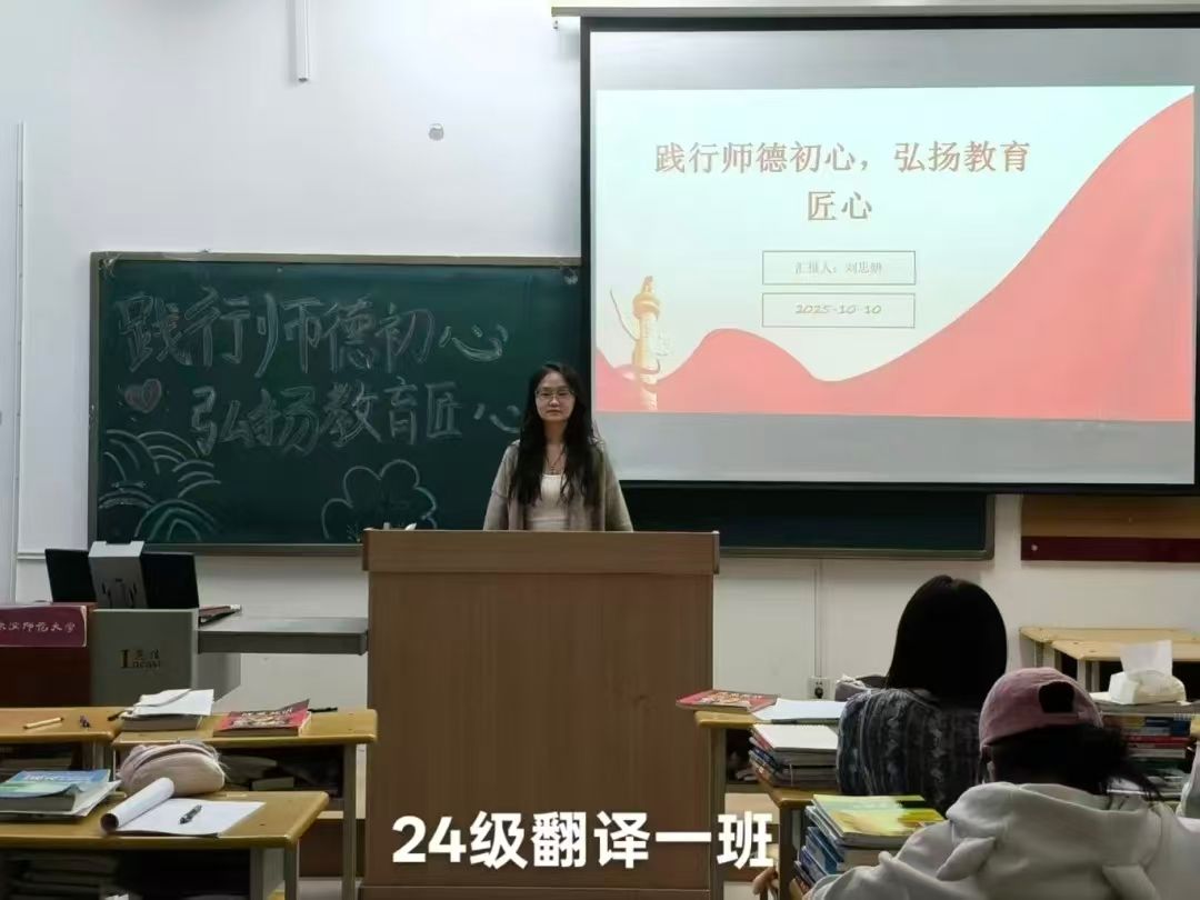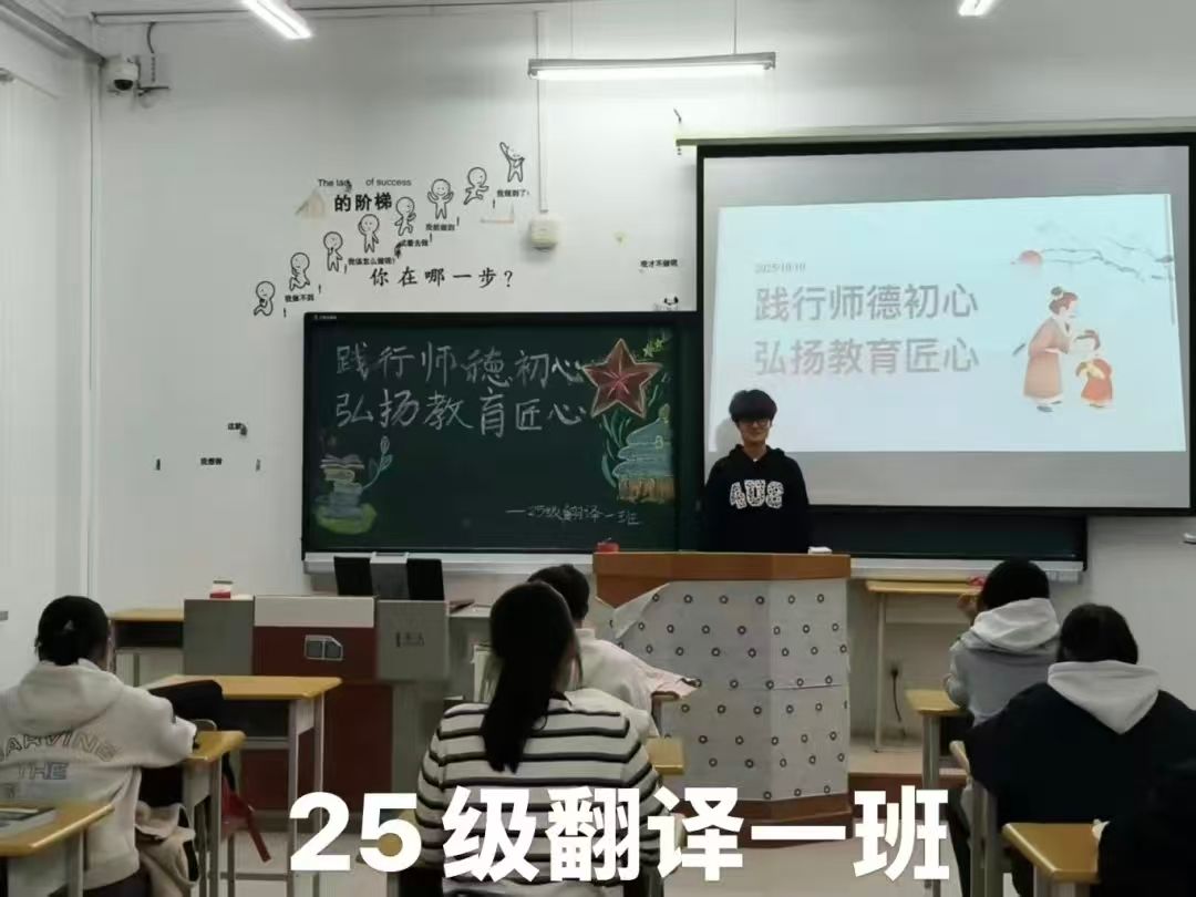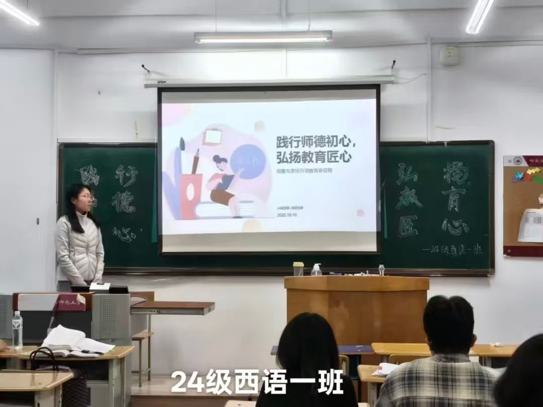 为厚植团员青年尊师重教情怀,引导西语学子深刻理解师德师风的时代内涵与专业价值,西语学院各团支部在2025年10月10日开展“师者匠心守初心,德润西语育新人”主题团日活动。各团支部以多元形式挖掘师德内涵、传递师风力量,推动团员青年在感悟与思考中明确成长方向,共绘“以德为基、以语为桥”的育人画卷。