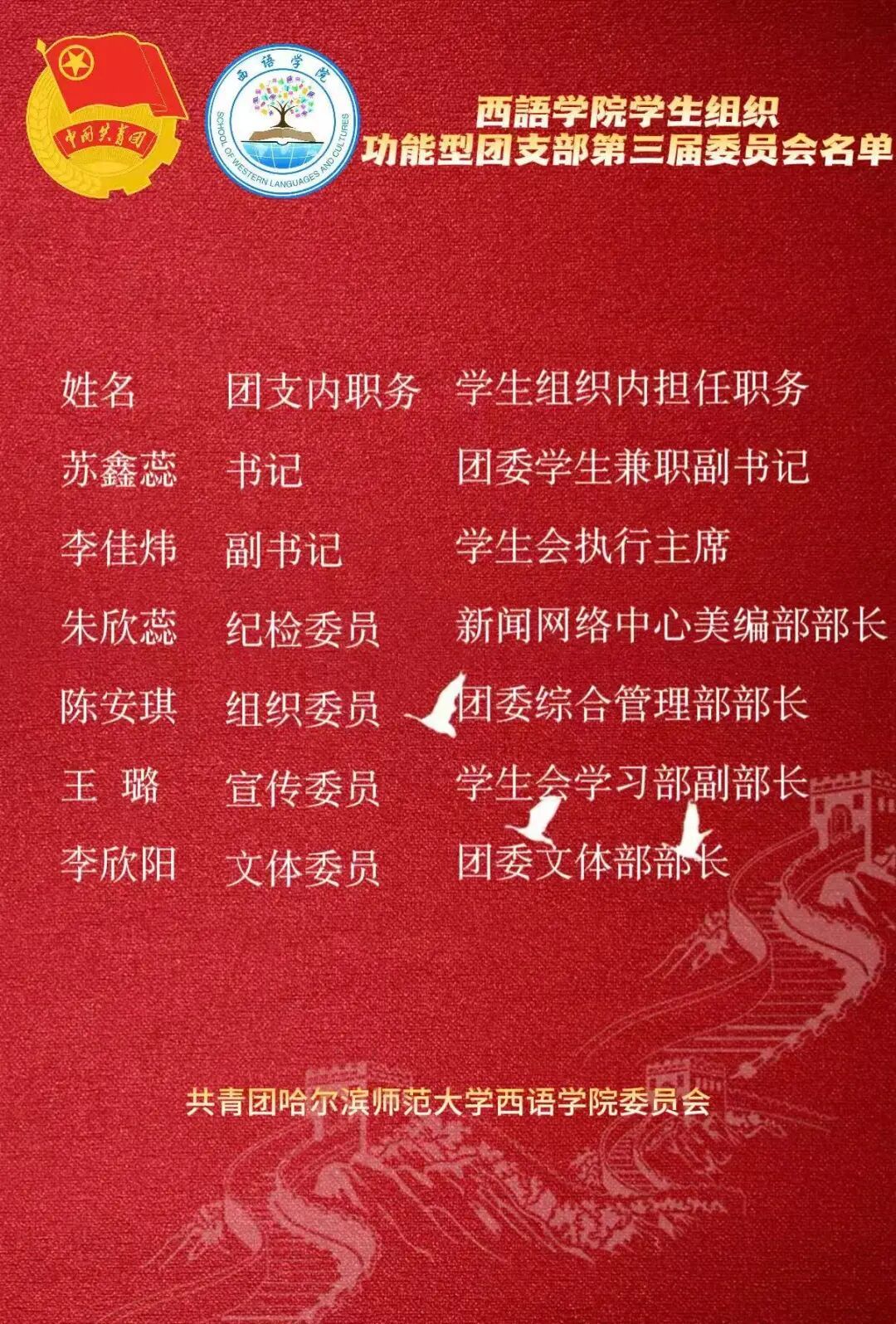 会议进行第三项,主持人吕欣泽同学宣读新一届团支部书记及委员当选名单,并宣布新一届团支部委员会成立。