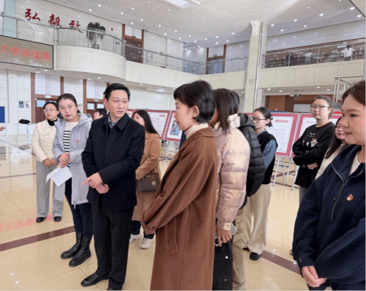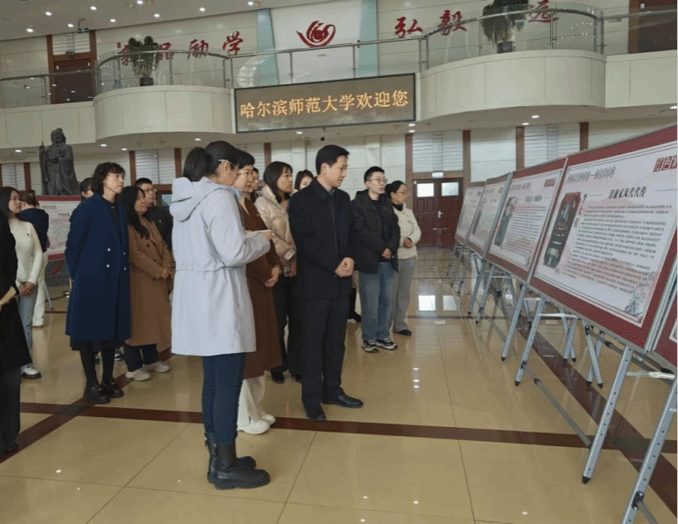 尚云鹤从“全面从严治党背景下教师的廉洁责任”和“新时代教育工作者的学术使命”两方面阐释活动意义,强调党员教师要廉洁自律、坚守师德底线,以学术追求涵育育人初心。全体党员集体参观图书馆“清风正气新征程”哈尔滨师范大学廉洁文化展,展览通过图文展板、实物案例等形式,展示学校廉政文化建设成果及教育领域廉洁从教事迹。