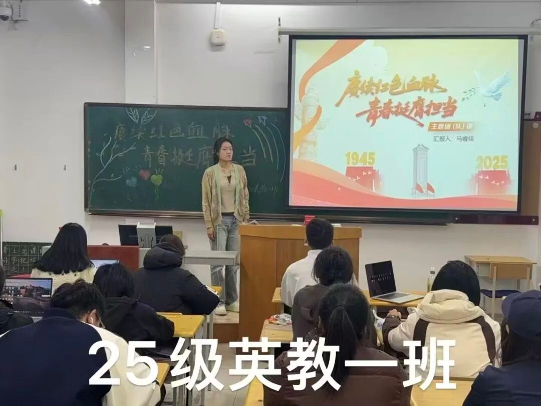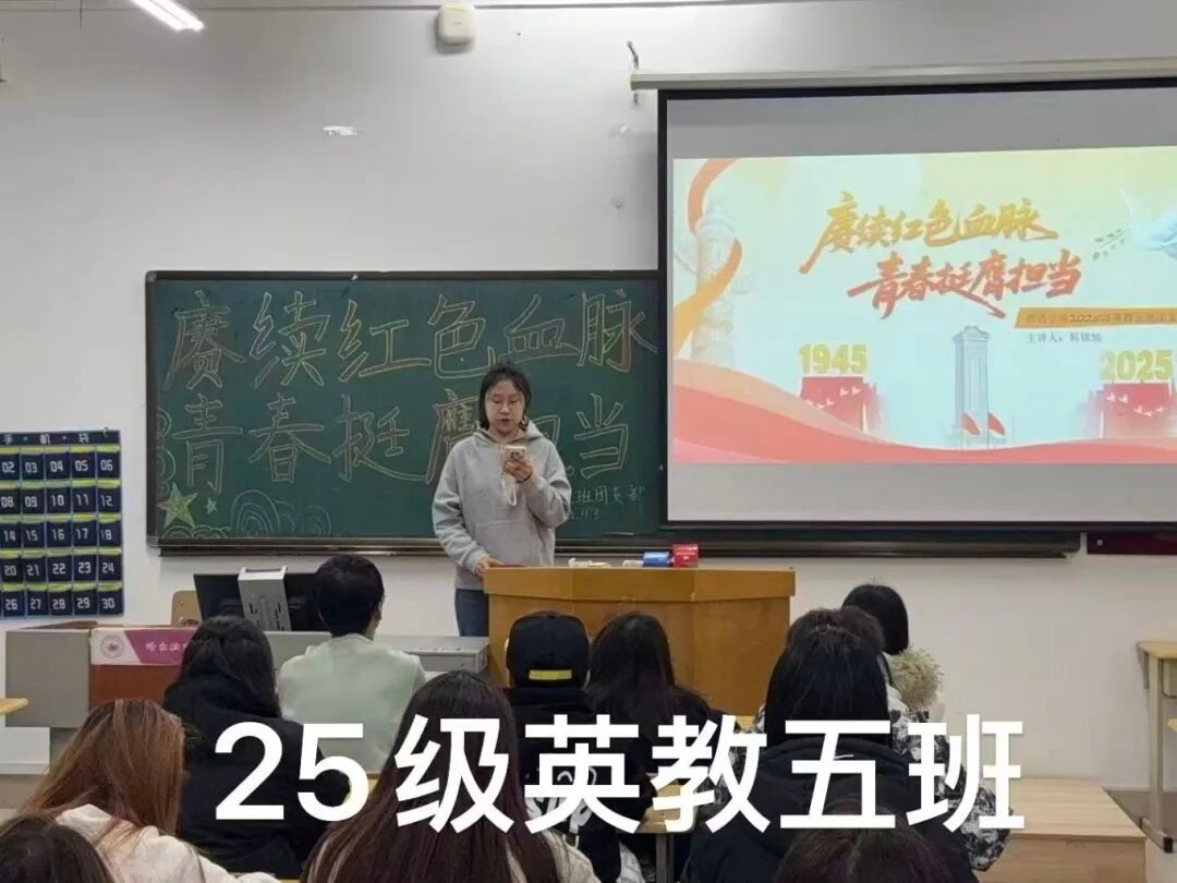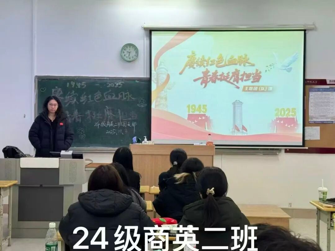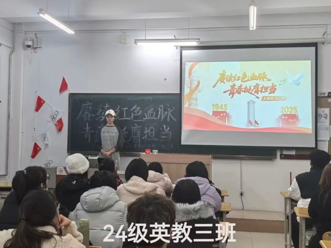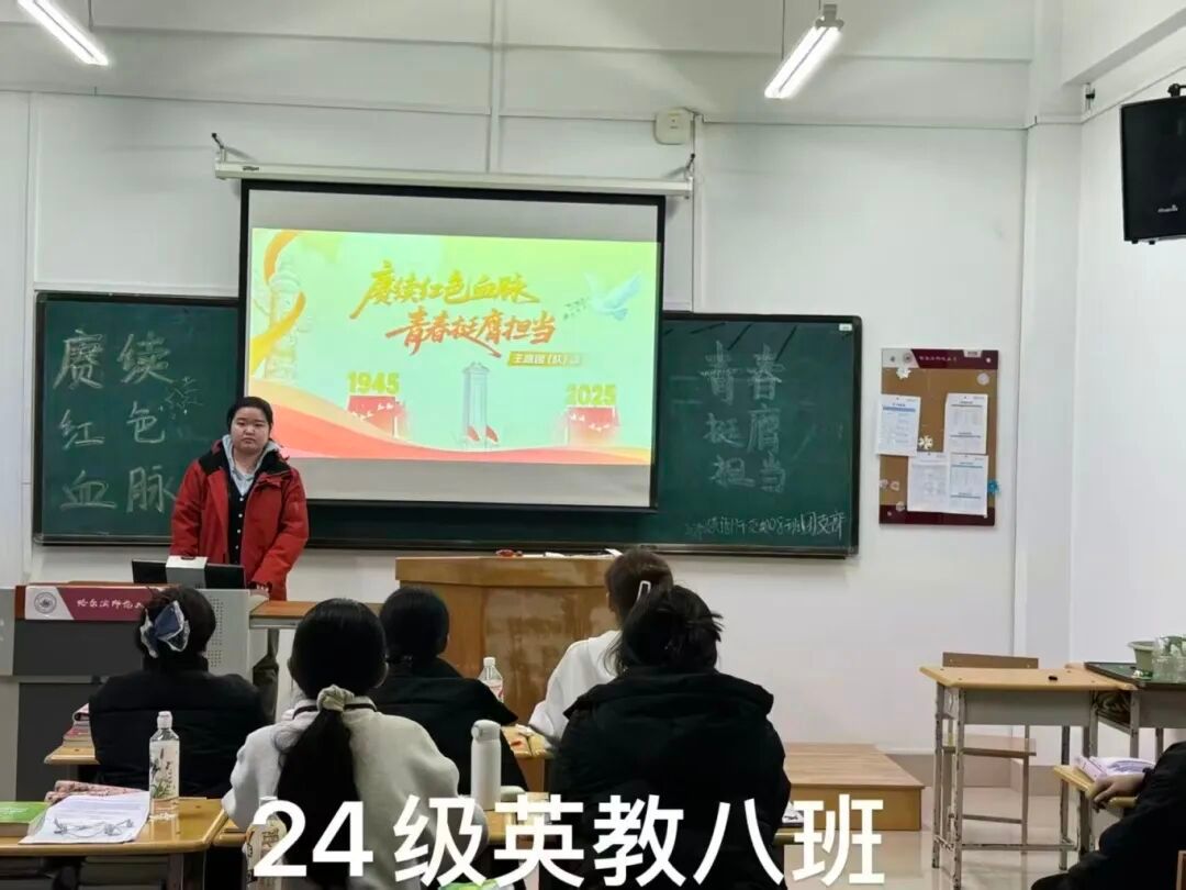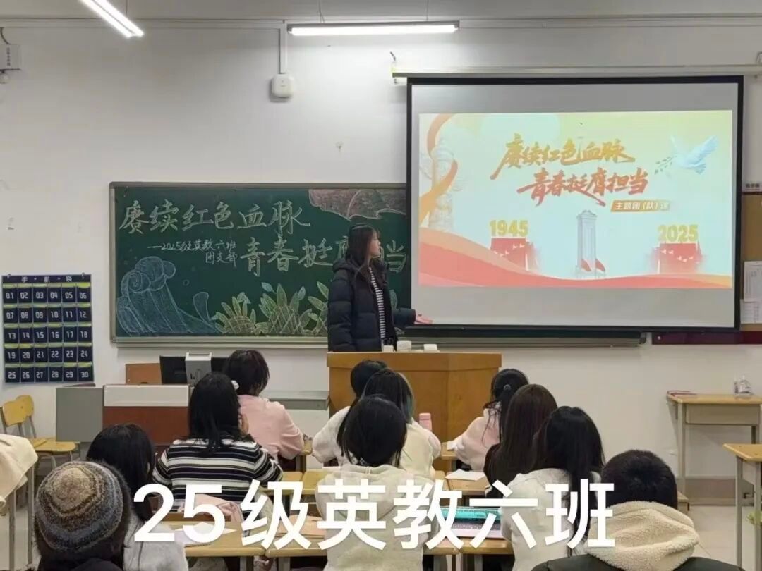 为深入学习宣传贯彻习近平总书记在纪念中国人民抗日战争暨世界反法西斯战争胜利80周年大会上的重要讲话精神,引导广大团员青年传承和弘扬伟大抗战精神,西语学院各团支部于2025年11月3日开展“赓续红色血脉,青春挺膺担当”主题团日活动。各团支部以多元形式挖掘和感悟精神内涵,确保学习教育走深走实,推动团员青年在感悟和思考中夯实成长根基,坚定历史自信。