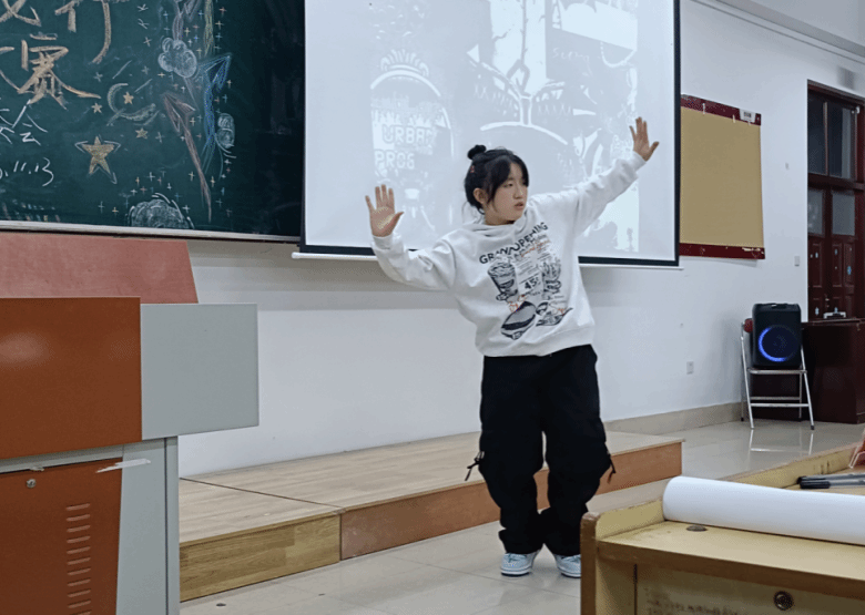 期间,武家莹同学为大家带来了精彩的舞蹈《Sticky+Yeah》,以抓眼吸睛的动作设计、超强的舞台感染力还原了原曲的潮流内核,每一个定格都气场全开,为大赛注入了酷炫的魅力。