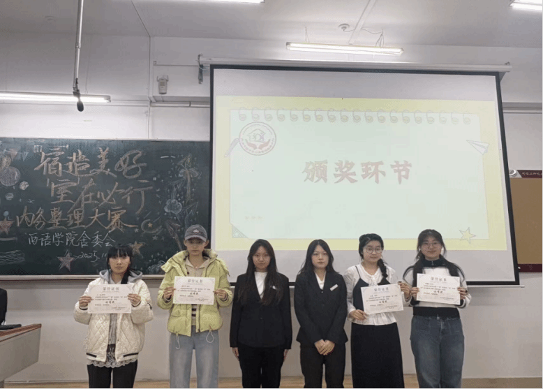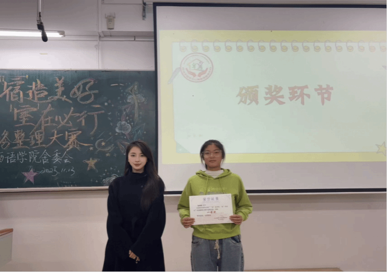 随着最后比赛结果的公布,西语学院内务整理大赛圆满落下帷幕。这不仅是一次内务整理的比拼,更是一次生活习惯的重塑和责任意识的觉醒。内务之美,在于整洁有序;青春之彩,在于自律自强。本次活动所传递的对整洁的执着追求、对规范的坚定坚守,旨在引导西语学子将这份素养延续至日常起居的每一处细节,让宿舍始终保持温馨和睦、整洁有序的良好状态,成为支撑学业进步与生活舒心的坚实港湾。这不仅是西语学院锤炼学子自律意识与生活能力的生动实践,更彰显了学院在宿舍管理服务工作中的用心深耕与创新突破——以赛事为载体,将宿舍管理要求转化为学子的自觉行动,既展现了西语学子严谨自律的优良风貌,更持续推动宿舍管理服务提质增效,切实提升同学们的校园幸福感与获得感,让优良习惯成为西语学子成长路上的宝贵财富。