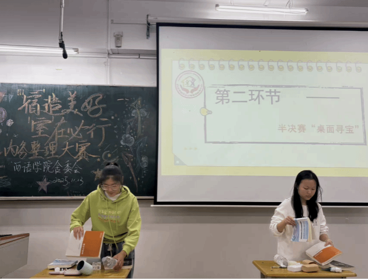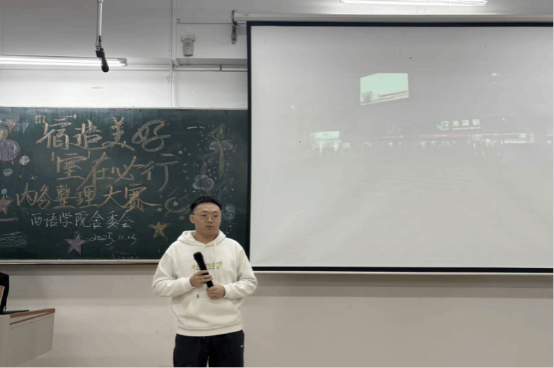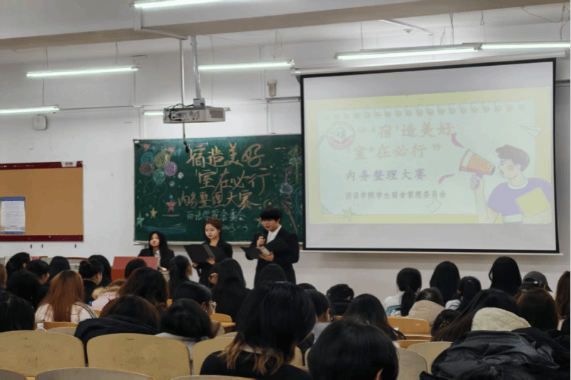 内务整理是生活态度的彰显,也是自律能力的体现。为加强学生宿舍管理,培养学生良好的生活习惯,营造整洁、文明、和谐的宿舍环境,2025年11月13日,西语学院学生宿舍管理委员会于西语楼451教室成功举办了“‘宿’造美好,‘室’在必行”内务整理大赛决赛。