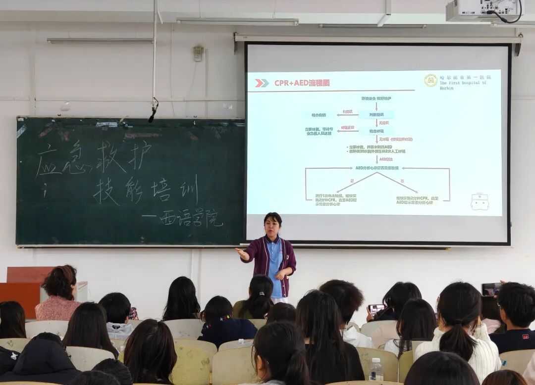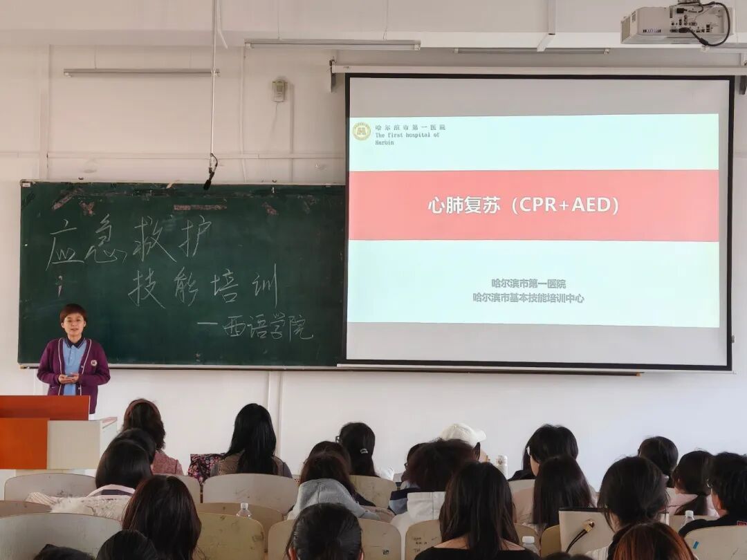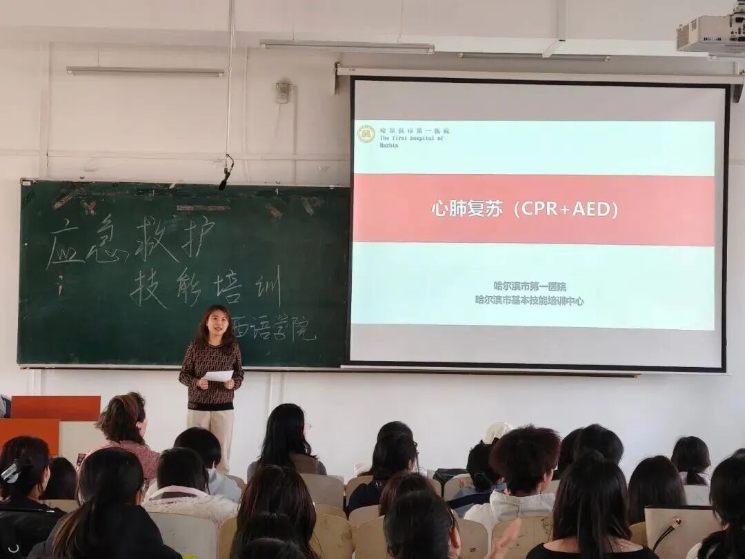 为普及急救知识,提升师生应急救护能力,西语学院于11月12日13:30在西语楼503举行应急救护技能培训,特邀哈尔滨市第一医院及哈尔滨市基本生命支援技能培训中心专家侯凤雪、闫颖、李艳坤入校讲座。学院师生共150余人参加培训。