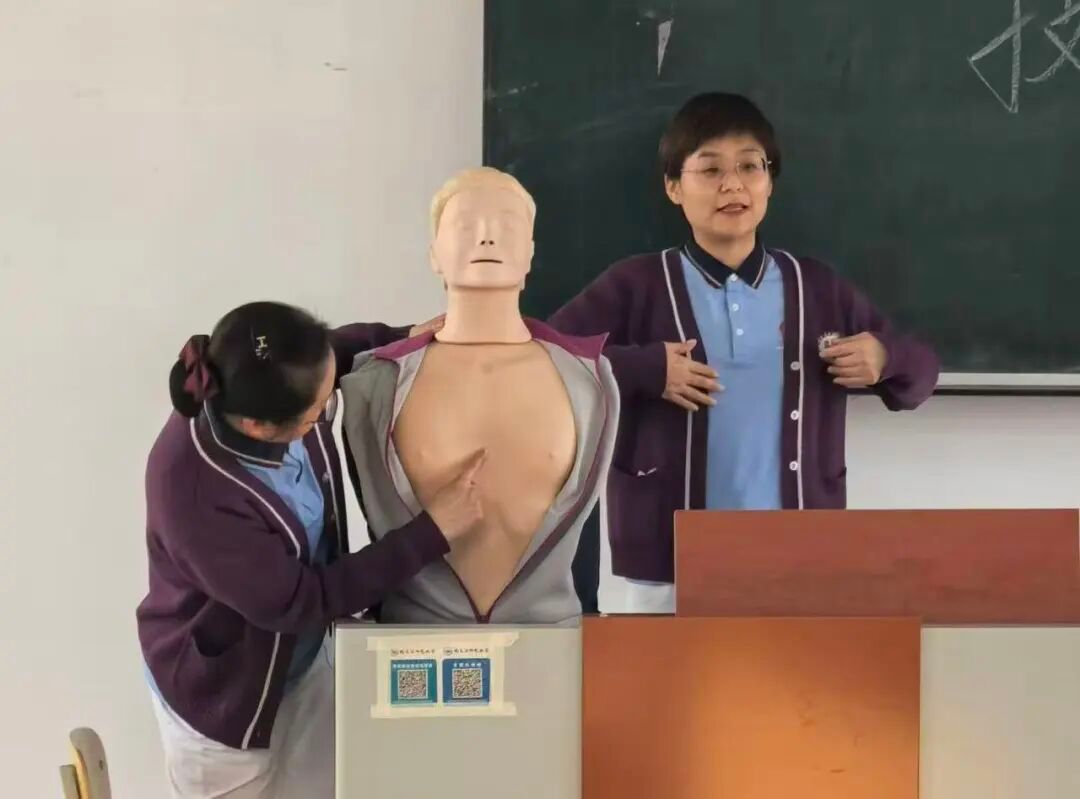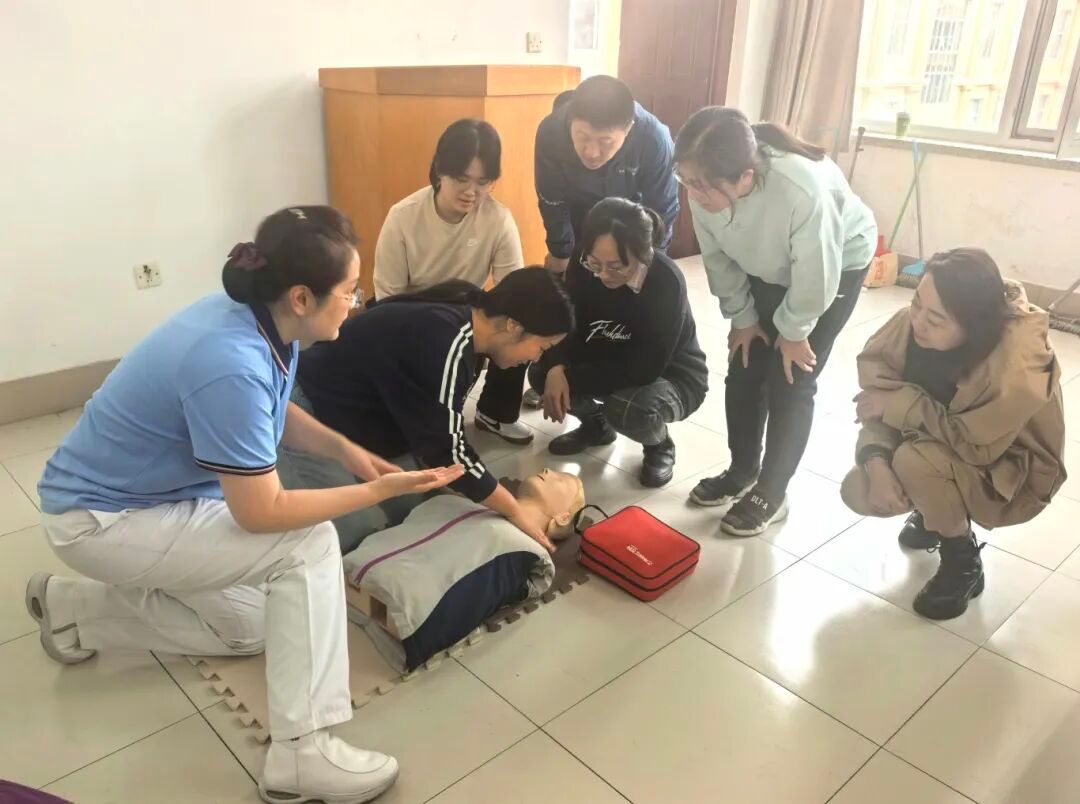 在互动实践环节,师生们踊跃参与,在专家的手把手指导下亲身实操心肺复苏流程,及时纠正不规范动作。现场学习氛围浓厚,大家在交流探讨中巩固所学技能,培训在轻松有序的氛围中圆满落幕。