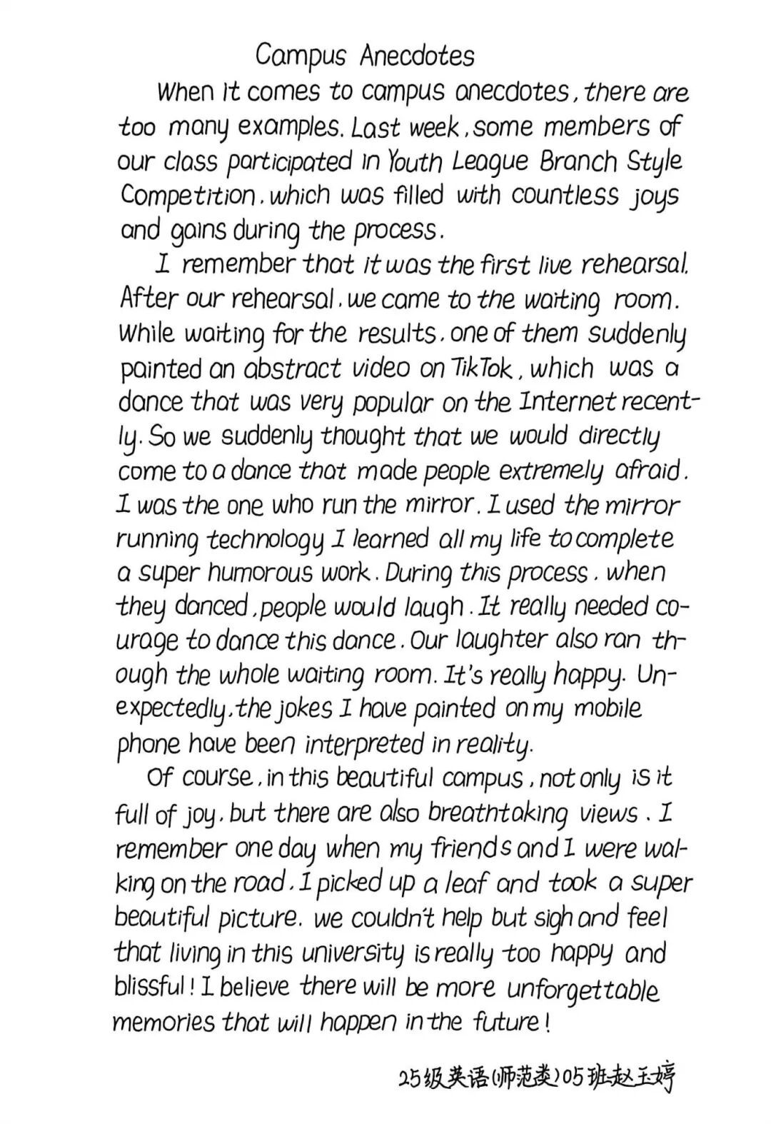 2025级英语(师范类)05班 赵玉婷
