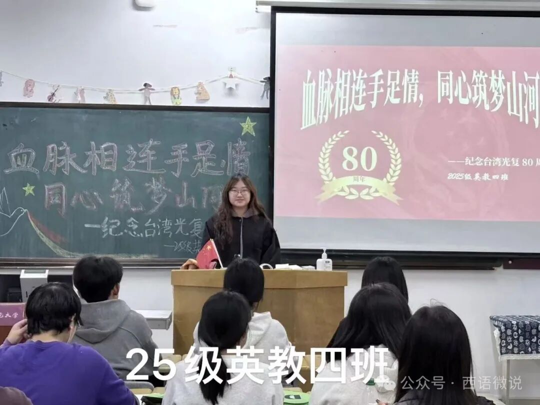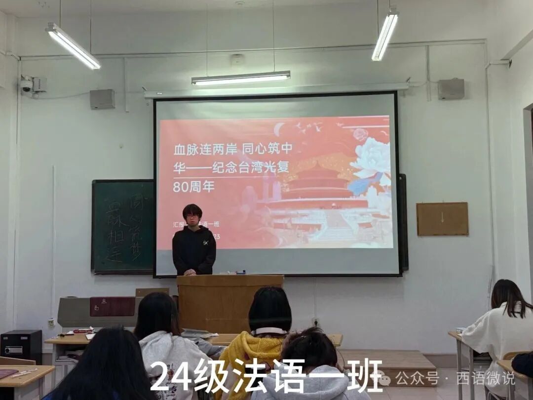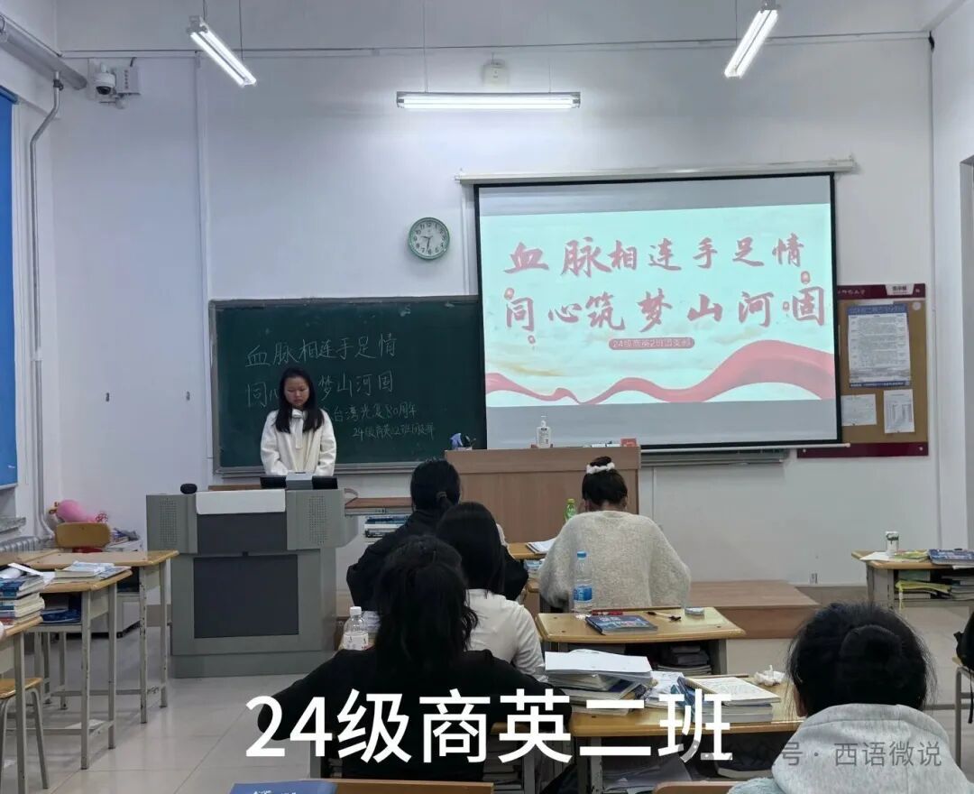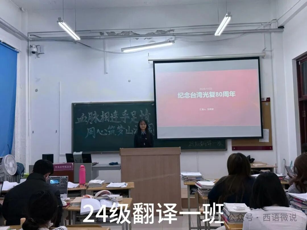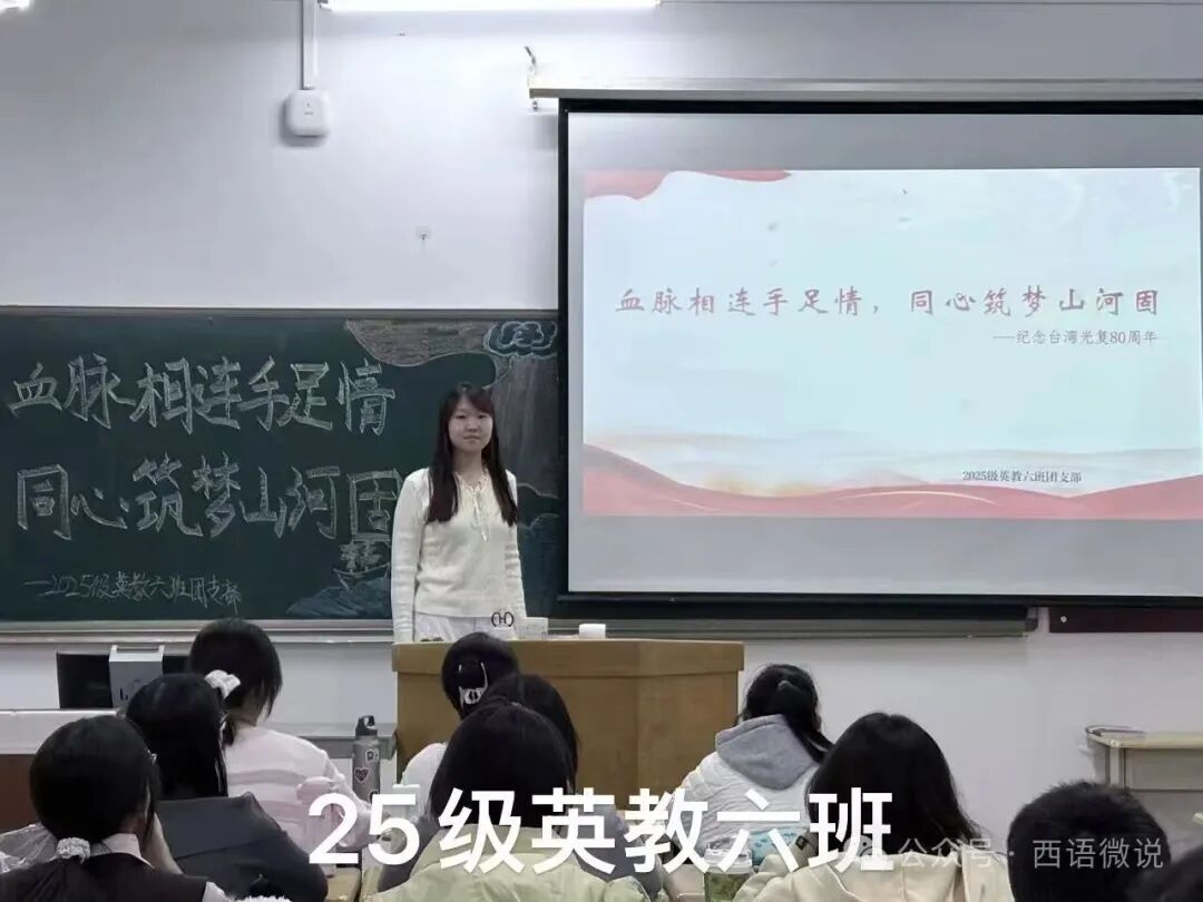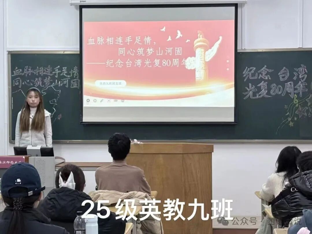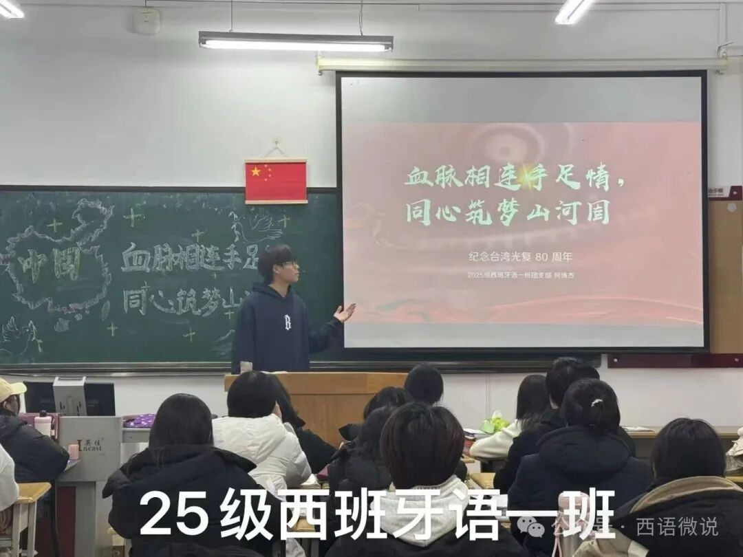 为铭记台湾光复历史,传承两岸同胞爱国精神,西语学院各团支部于11月23日晚自习开展“血脉相连手足情,同心筑梦山河固”纪念台湾光复80周年主题团日活动。
