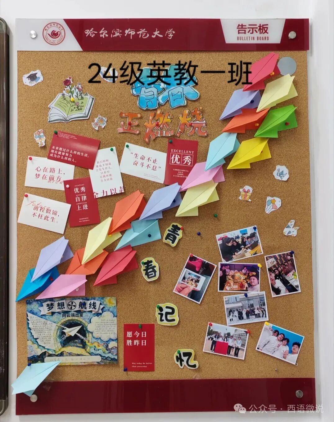 为了提高同学们的动手实践与创意表达能力,增强班级集体凝聚力与归属感,营造温馨有温度的学习生活氛围,让青春创意在布置中绽放,让班级成为承载成长记忆、见证岁月前行的温暖港湾,西语学院学生会于2025年11月24日特此举办本次“青春执笔,岁月成章”班级布置活动。旨在以班级布置为载体,激活同学们创意灵感与实践能力,打造兼具温馨感与成长印记的专属空间,让岁月故事在角落中沉淀。