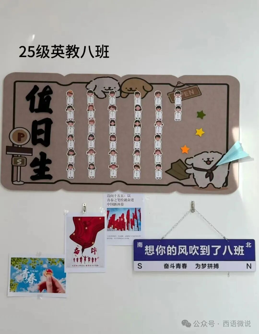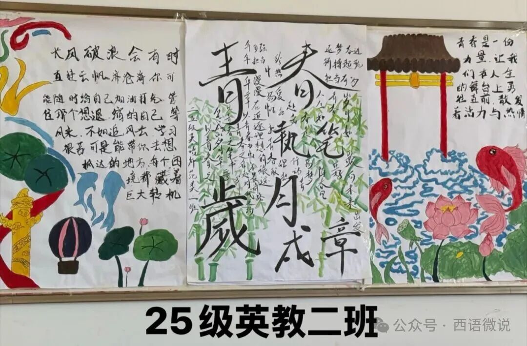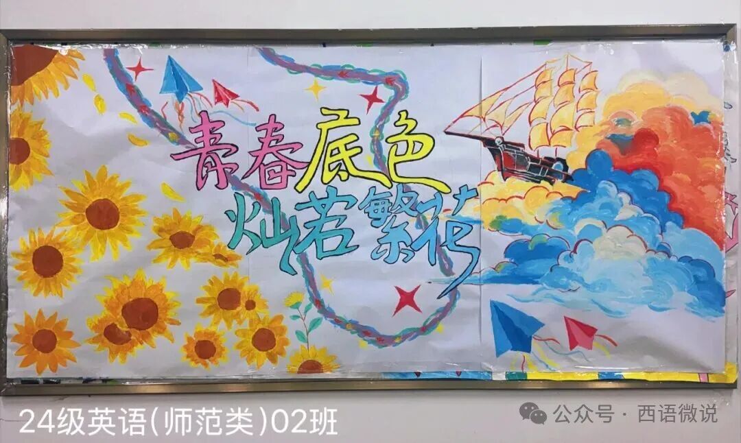 本次活动面向西语学院2024、2025全体班级,在布置过程中,各班以青春为灵感底色,用创意为笔墨挥洒巧思。有人挥毫泼墨勾勒主题板报,以灵动线条勾勒青春轮廓,让教室在画笔与巧思中焕发新生,有人以双手为画笔,用汗水作底色,在共同劳作中让环境卫生焕然一新。在活动前期,工作人员提前统筹规划、细化分工:从敲定评选标准、设计评分细则,到梳理流程节点、每一项筹备都精益求精。活动中期,各班按时提交照片。活动后期,工作人员投入收尾工作:细致整理各班成果,以责任为笔,用严谨作墨,让每一份付出都有回响,为本次活动画上圆满句号。
