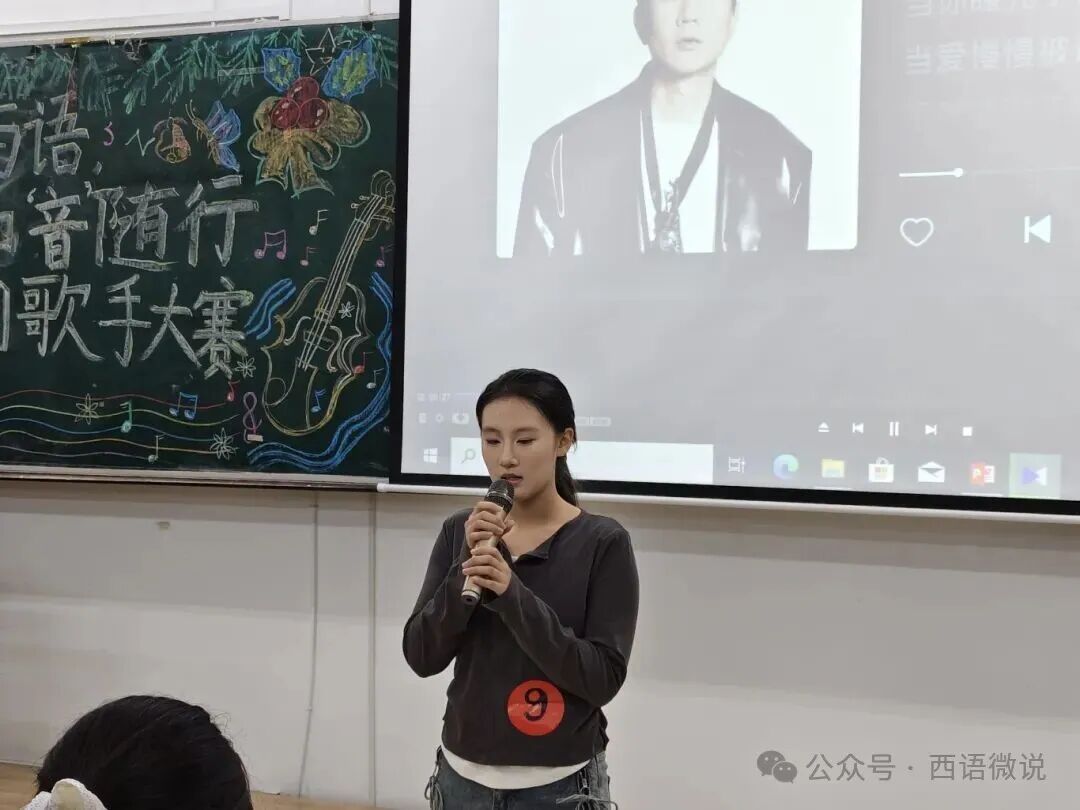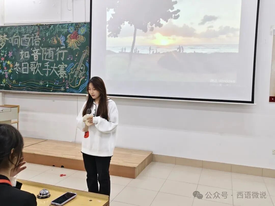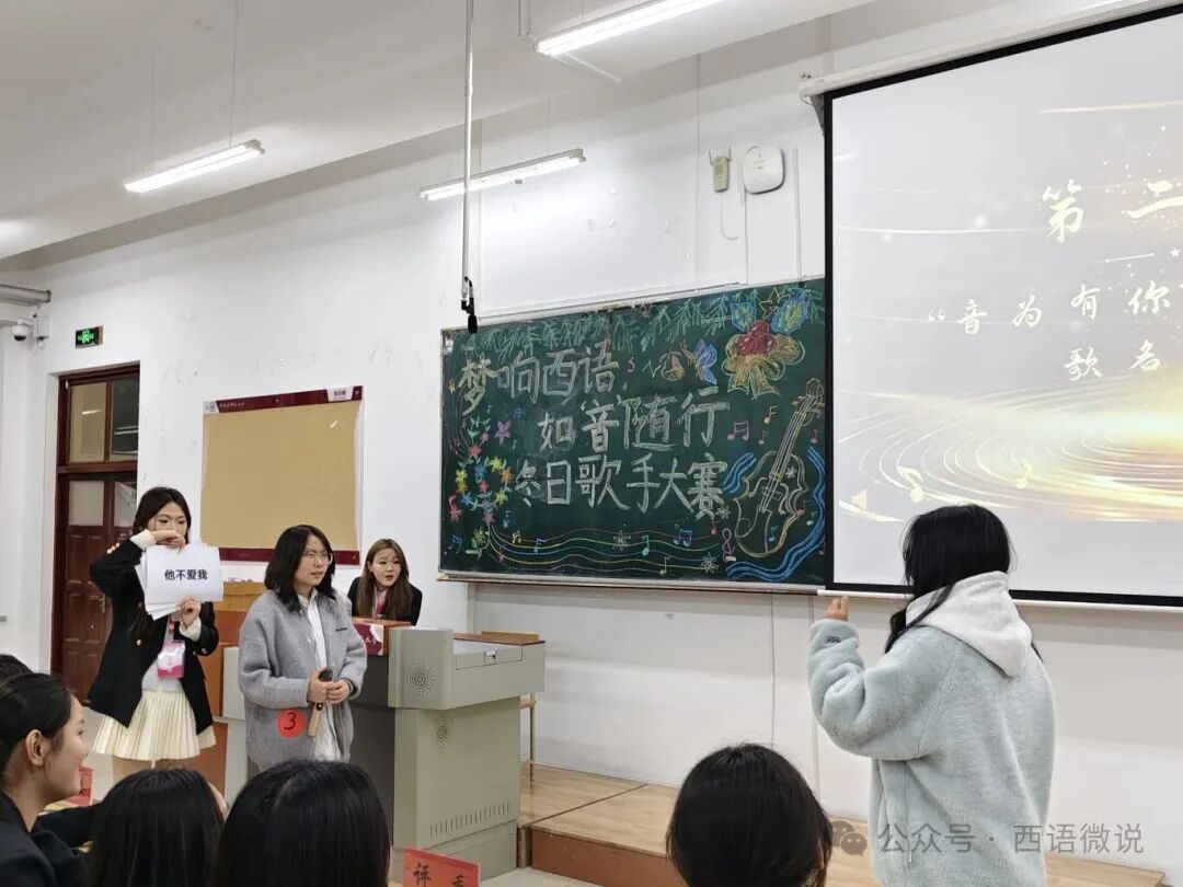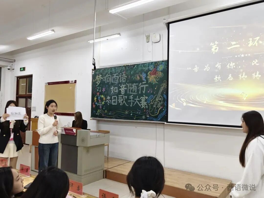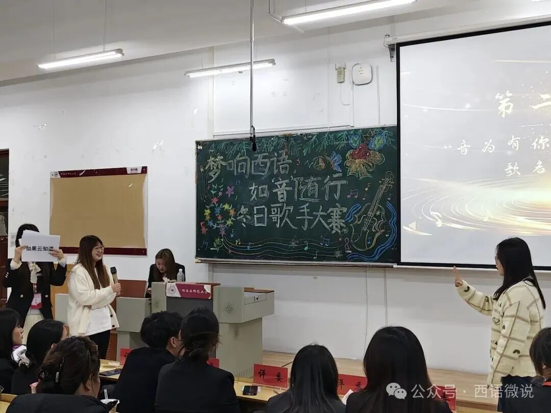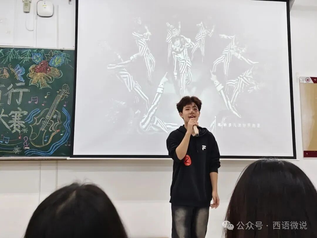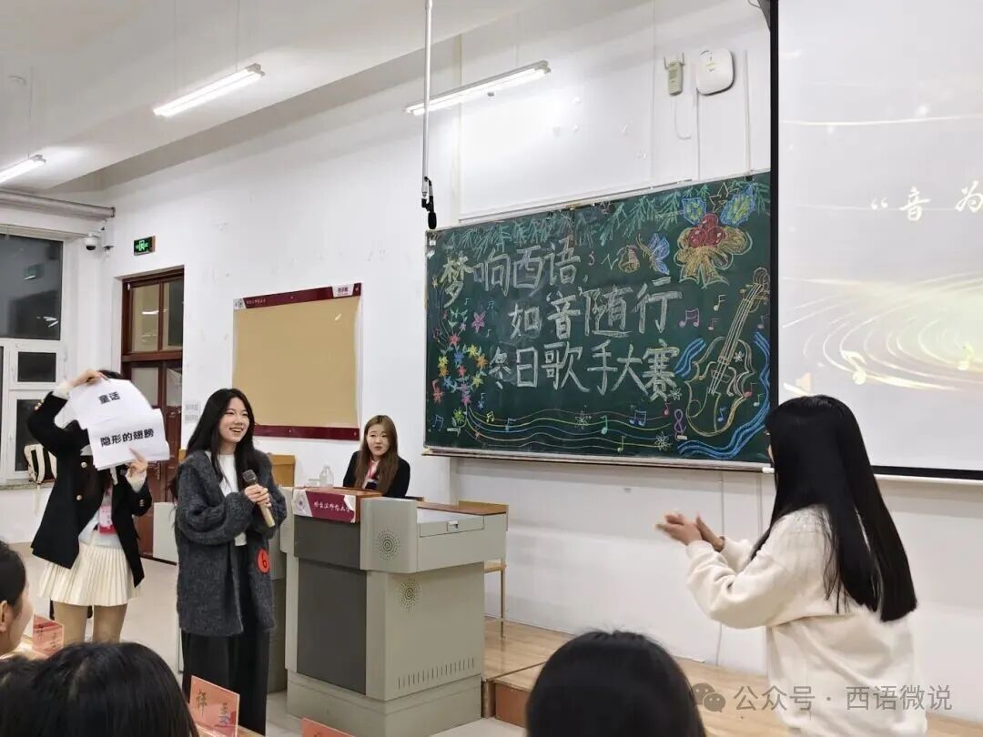 星光点亮冬夜,旋律温暖心房。 西语学院学生会于12月1日晚19:00举办了“梦响西语,如‘音’随行”冬日歌手大赛决赛。十位怀揣音乐梦想的西语学子,历经初赛选拔,终于站上了决赛的闪耀舞台。在主持人王柄淏、杨金凤热情洋溢的介绍下,一场关于热爱、青春与梦想的视听盛宴正式拉开帷幕。今夜,他们以歌为媒,用旋律诉说故事,用音符碰撞灵魂,共同谱写了一段难忘的冬日乐章。