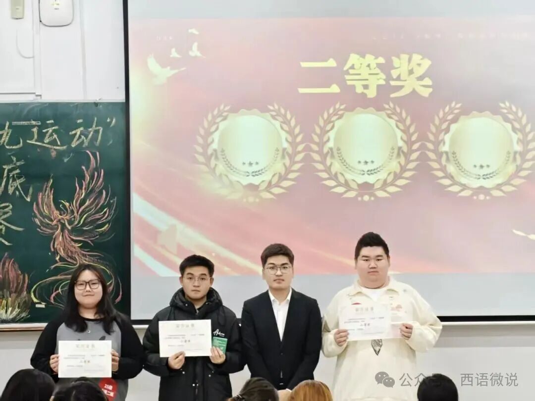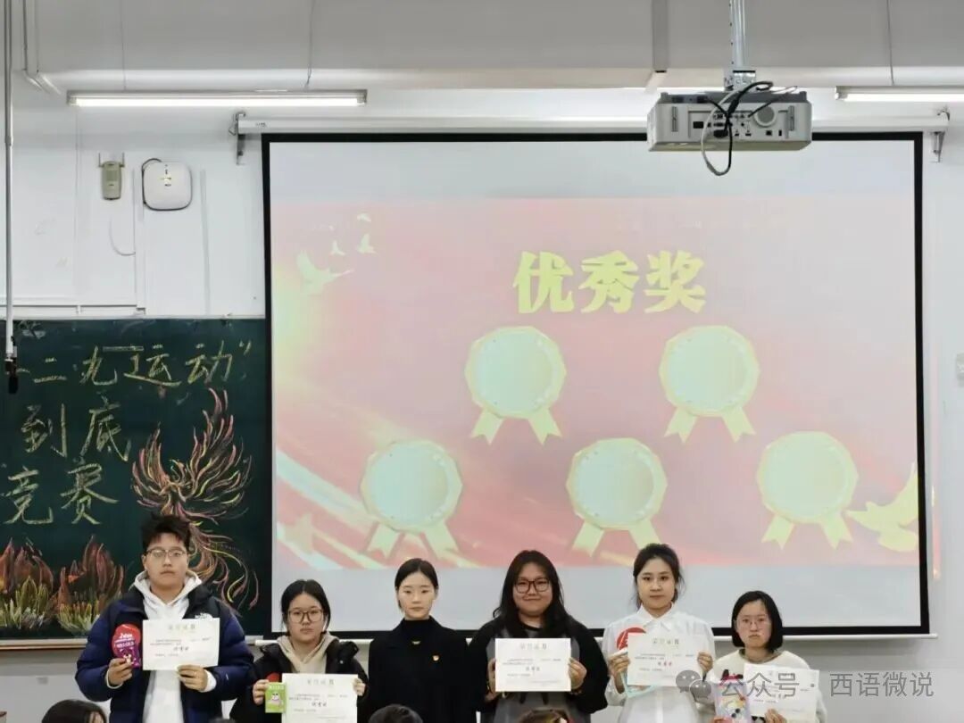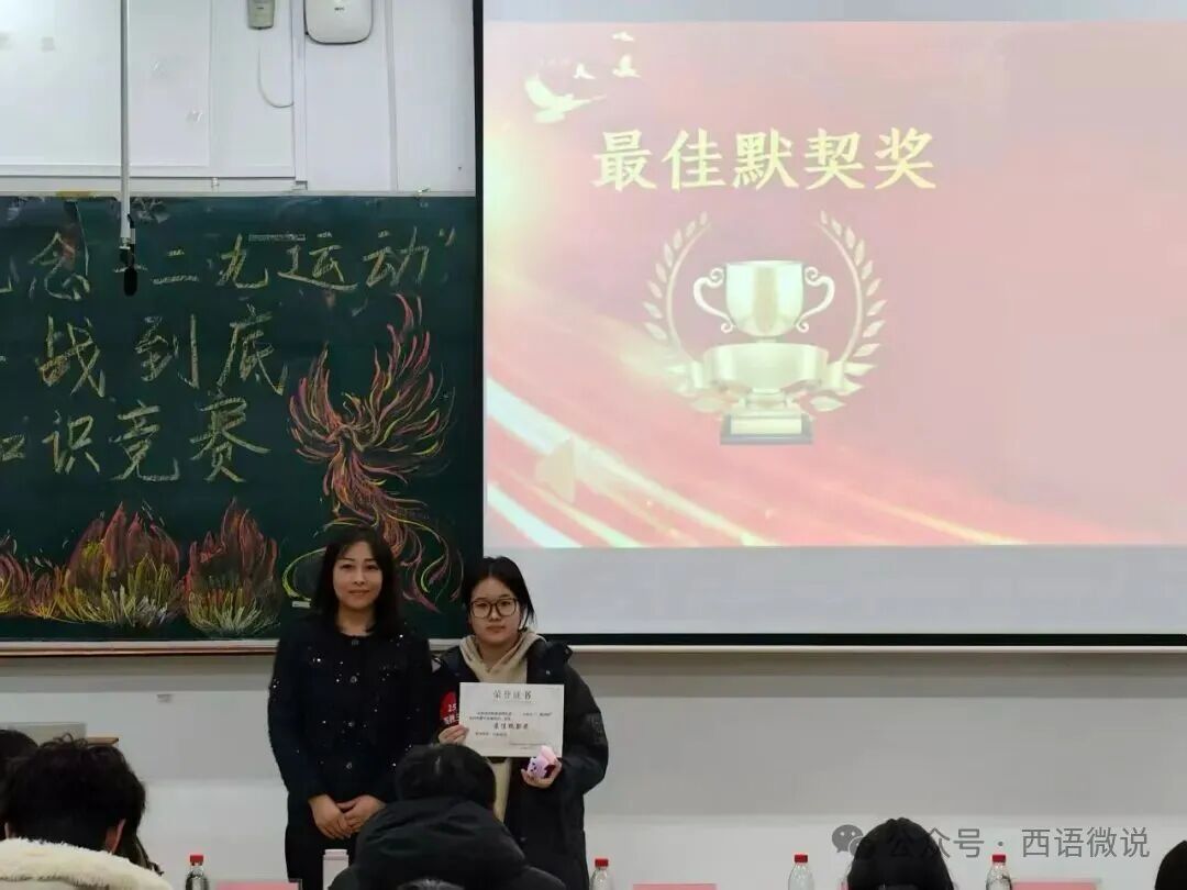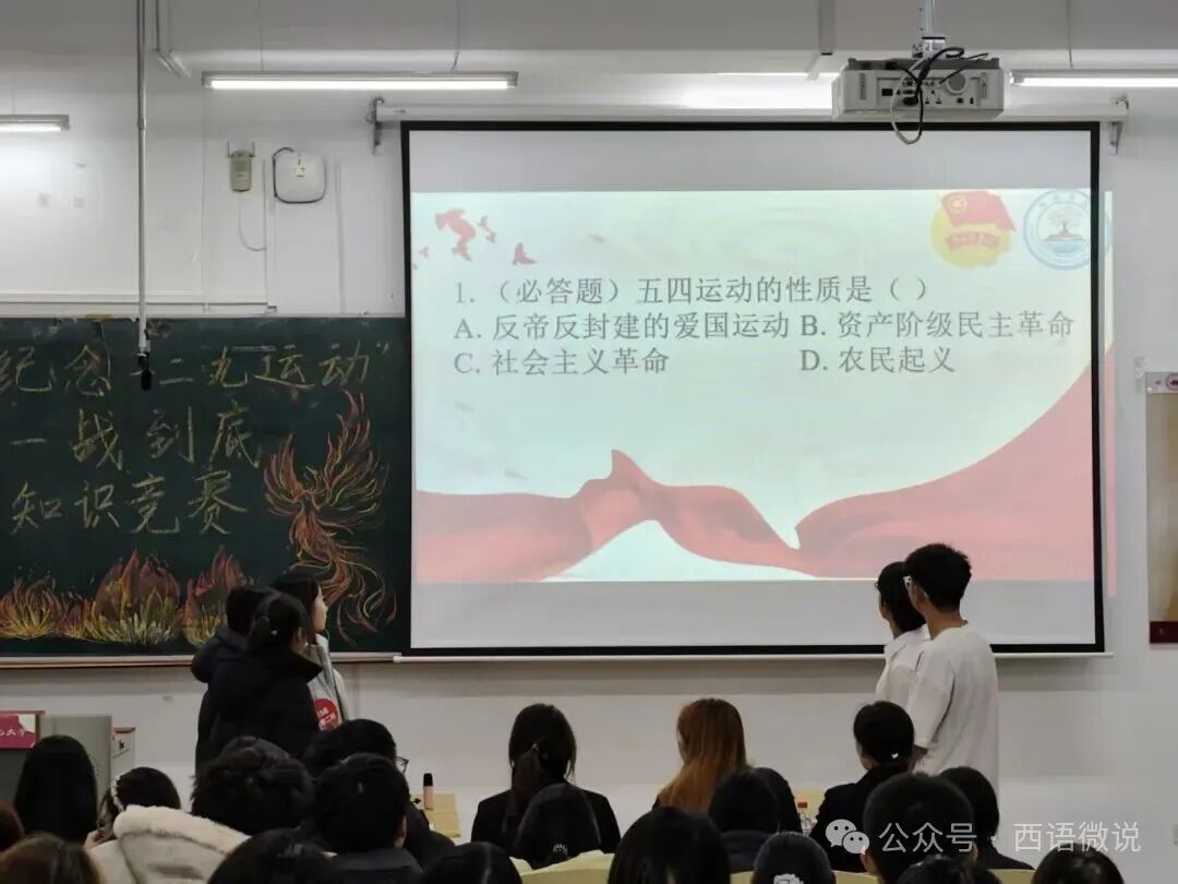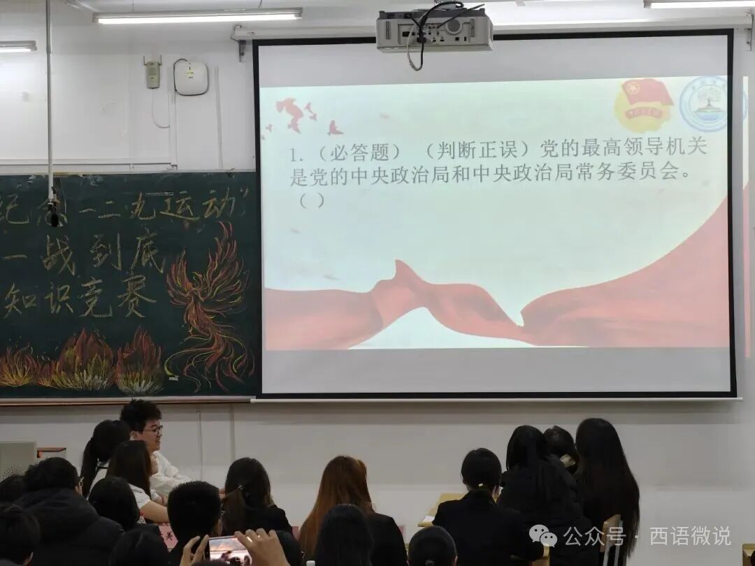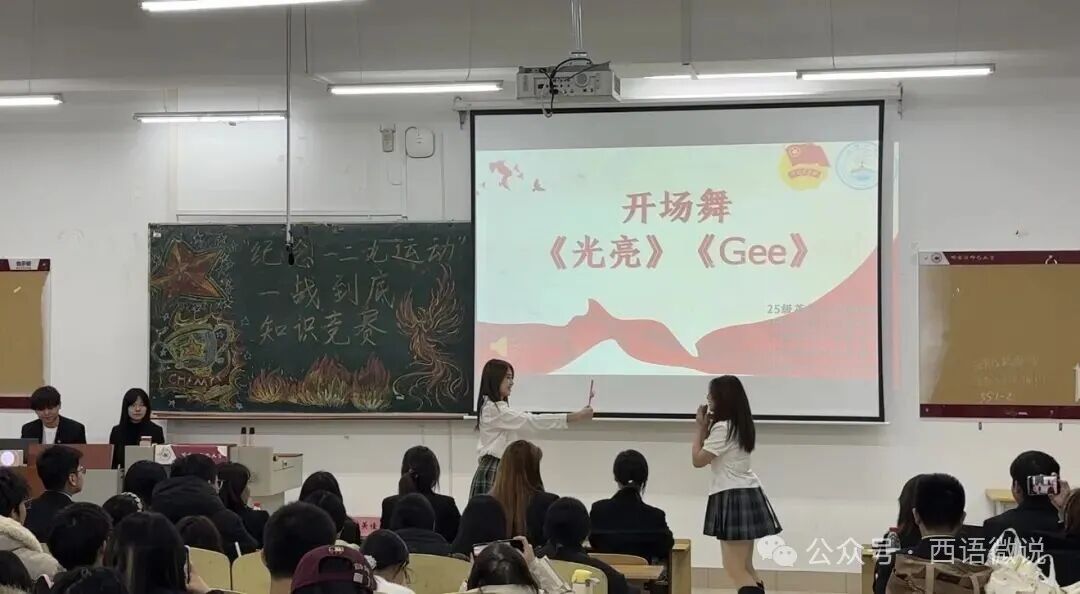 为纪念“一二·九”爱国运动,激发青年爱国热情,西语学院团委于2025年12月开展“一二·九”爱国运动知识竞赛。西语学院团委书记徐伟伟,校学生会主席团成员李思潼,校行知青年新媒体中心副主任项奎智,经济与管理学院团委学生兼职副书记李柯敏,东语学院团委学生兼职副书记韩溪娅,西语学院团委学生兼职副书记计美佳,曹妍妍,苏鑫蕊担任本次比赛评委。