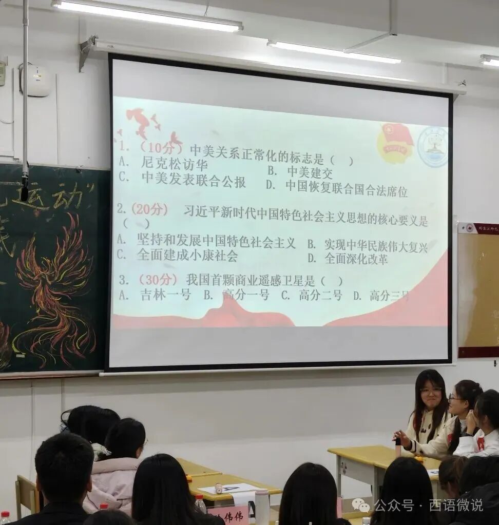 比赛间隙,进行“历史事件猜一猜”互动游戏。大屏幕上趣味表情包搭配关键文字提示,生动还原“一二·九”运动等经典历史场景。参与者积极抢答,现场掌声、欢呼声此起彼伏,让紧张的竞赛氛围多了几分轻松与欢乐。
