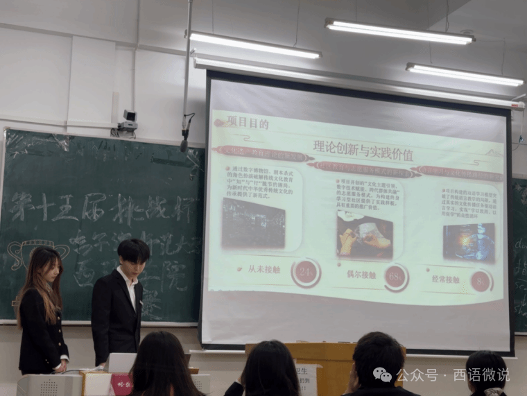 第十五届“挑战杯”全国大学生创业计划竞赛以激发青年创新潜能、培育创业精神为核心目标,旨在提升学生创新创业实践能力,助力高素质创新型人才培养。为推进赛事相关工作,西语学院于12月2日19:00在西语楼402教室举办院内初赛。经西语学院创新创业协会严格筛选,共有八组优秀项目团队进入本次初赛并参与现场答辩环节。