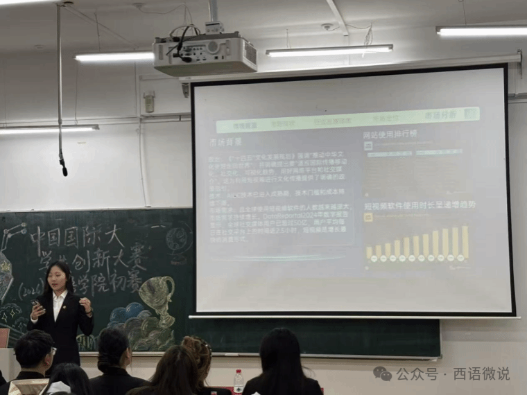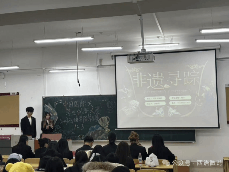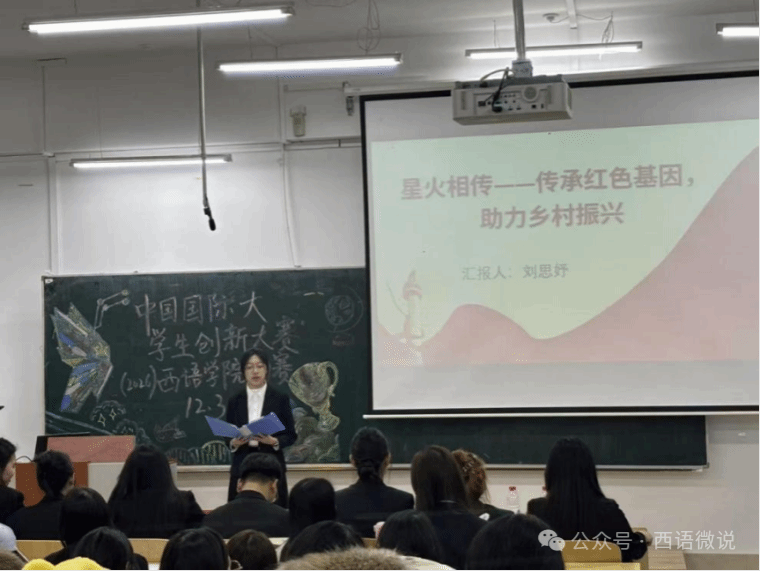 中国国际大学生创新大赛(2026)以“我会创,我敢创”为主题,旨在深化大学生创新创业教育,全方位提升学生的创新精神、创业意识与实践能力。为高效推进赛事筹备与选拔工作,西语学院于12月3日19:00在西语楼451教室举办院内初赛。经学院创新创业协会的专业筛选与评审,共八组优秀项目团队脱颖而出,进入本次初赛并参与现场答辩环节。