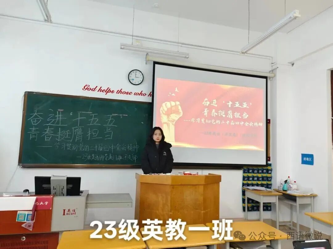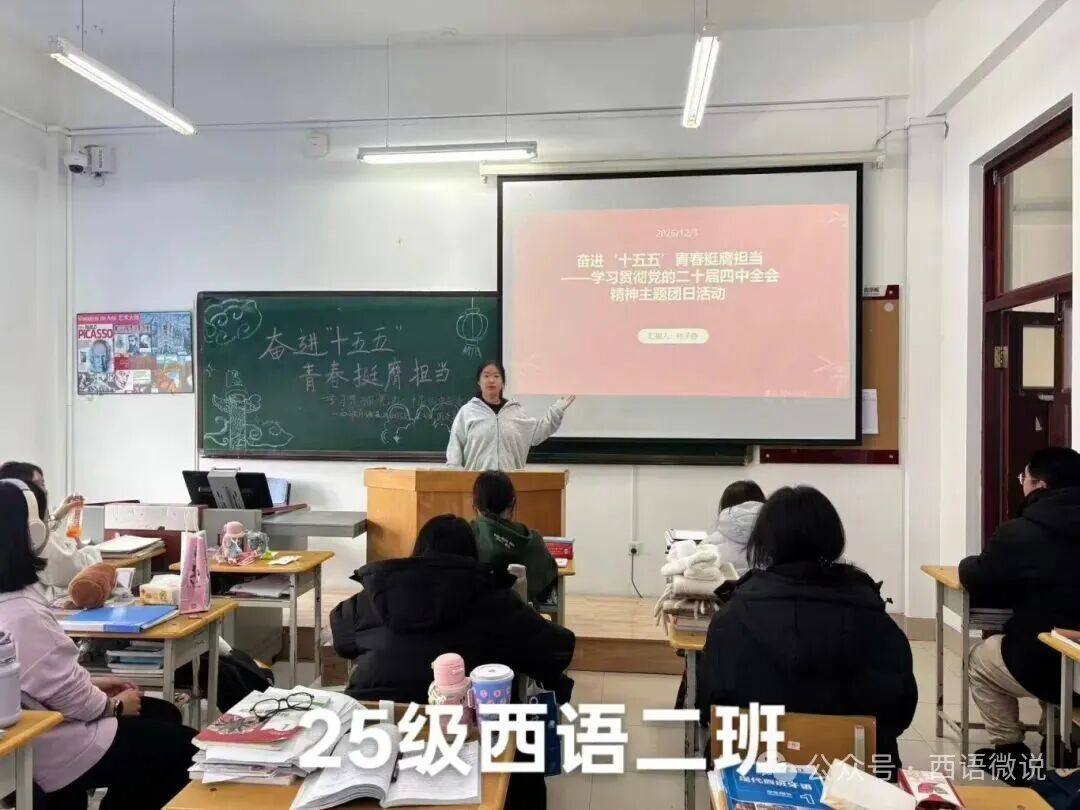 为了引导团员青年学习二十届四中全会精神,把握“十五五”战略定位,锚定国家目标规划个人发展,凝聚青春力量共赴新征程。西语学院各团支部积极开展“奋进‘十五五’青春挺膺担当”——学习贯彻党的二十届四中全会精神主题团日活动,各团支部积极参与。