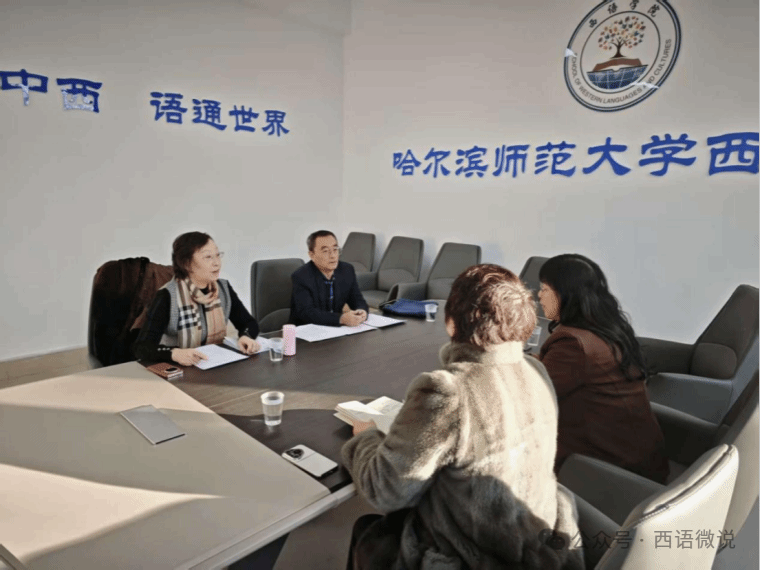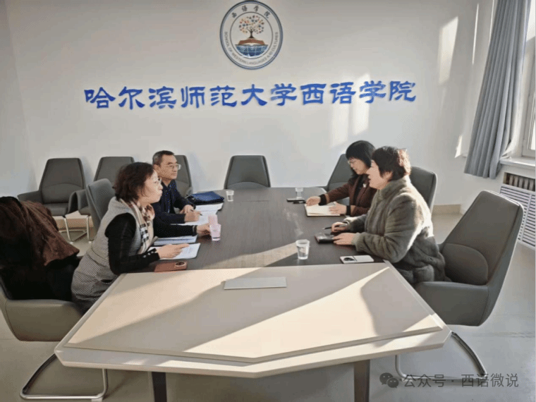 2025年12月22日9:00,学校督导赵滨丽、刘孝忠莅临西语学院,在西语楼209B会议室开展2025-2026学年第一学期教学反馈,西语学院教学院长才亚楠和英语教育系郭颖主任参加座谈反馈。