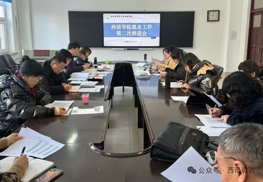 为深入贯彻落实学校就业工作会议精神,全面统筹推进2026届毕业生就业工作提质增效,1月4日,西语学院在西语楼211室召开2026届毕业生就业工作第二次推进会。学院领导班子成员、各系主任、副主任及全体辅导员参会,会议由学院党委书记李晓航主持。