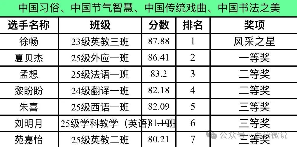 中华文明源远流长,孕育出璀璨夺目的文化瑰宝。通过各位讲述者的英语讲述,我们仿佛穿越千年,与这些镌刻在华夏文明长河中的经典一一相逢。这些文化瑰宝,在民俗传承中延续烟火,诉说着生生不息的家国情怀;在节气更迭中顺应天地,蕴藏着古今相通的生存智慧;在梨园唱腔中流转韵味,承载着古韵风雅的艺术精髓;在笔墨纸砚中落笔生花,彰显着独步东方的审美风骨。它们的存在不只是时光深处的文明遗存,更是我院学子坚定文化自信、汲取精神力量的源泉。