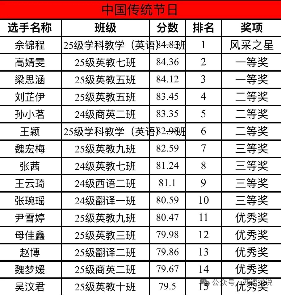 活动中,同学们立足专业所学,从不同视角分享对传统节日的理解与感悟。大家查阅历史渊源、梳理民俗风情、解读文化内涵,将节日里的故事以清晰流畅的英语讲述、丰富直观的图文展示,让一个个传统节日变得鲜活可感。从新春的热闹祥和,到端午的清雅意蕴;从中秋的团圆思念,到重阳的敬老温情,同学们用真诚的话语,展现着中华传统节日独有的浪漫与温度。