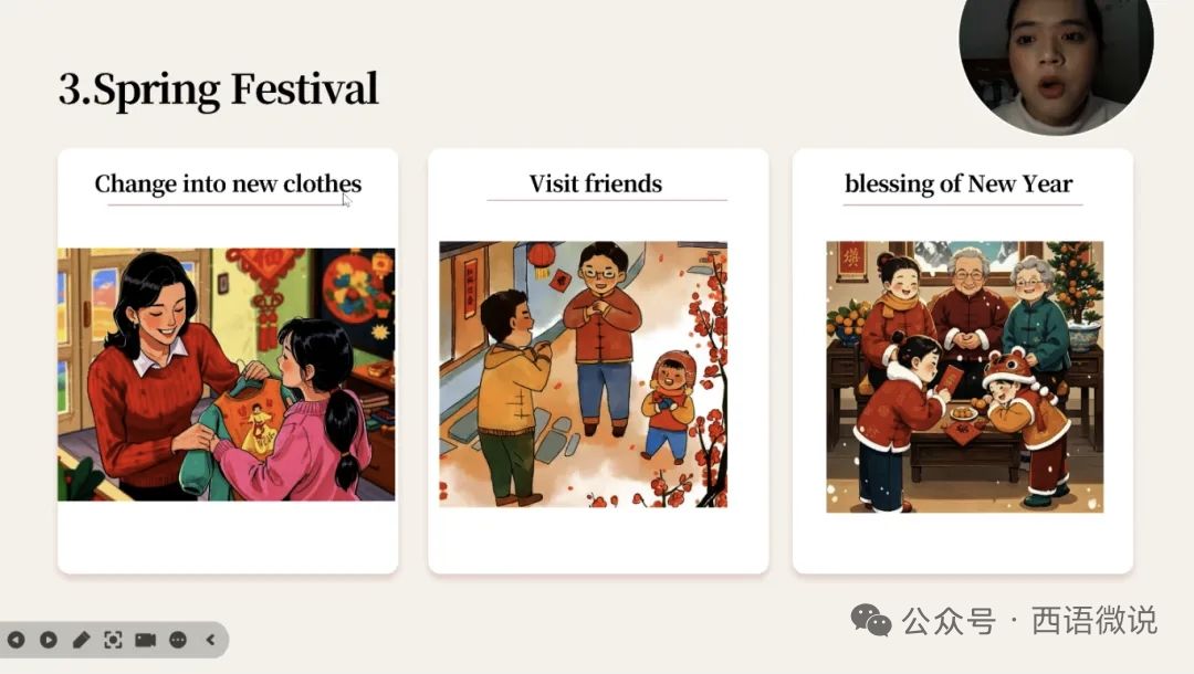 为深入学习贯彻党的二十届四中全会精神,充分彰显学院专业特色,进一步传承中华优秀传统文化、厚植青年文化自信,西语学院团委举办“语贯东西承古韵,文通中外续华章”第四届“用英语讲中国故事”主题活动。活动以语言为纽带,搭建中外文化交流之桥;以青春为视角,传递中华文脉独特魅力。本期,让我们一同走进意蕴深厚的中国传统节日,在四季更迭中感受民俗风情,在岁月流转中读懂民族情怀。