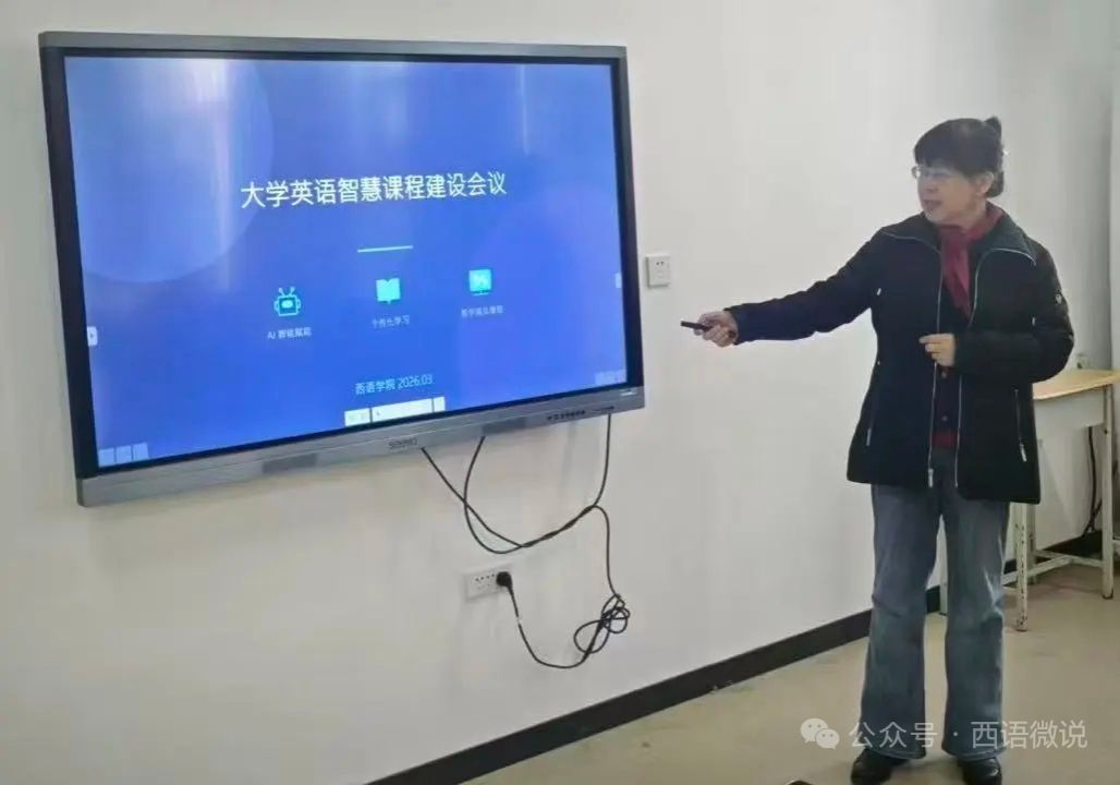 为深入贯彻落实国家教育数字化战略2.0及人工智能赋能教育行动,加快推动智慧教学体系建设,3月11日,西语学院召开大学英语智慧课程建设专项会议。会议围绕学校2026年度学校新学期工作会议精神以及西语学院2026年度重点工作计划,聚焦“数智赋能大学英语教学改革”工作,总结阶段性成果,部署下一阶段智慧课程建设任务。大学英语学术英语系主任于虹、2025级部分教师及智慧课程团队教师参加会议。教学副院长才亚楠出席会议并讲话。