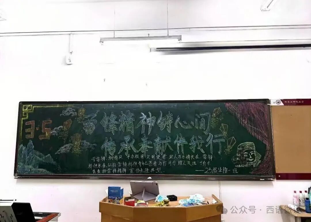 为确保本次活动有序开展、取得实效,西语学院青年志愿者协会提前谋划、周密部署,明确活动主题与创作要求,鼓励各班级立足专业特色、发挥巧思,围绕雷锋生平事迹、经典雷锋语录、新时代雷锋精神内涵进行板报创作。活动通知发布后,全院各班级迅速响应,班委牵头组织、同学们踊跃参与,从文案撰写到细节勾勒,每一个环节都倾注心血,以饱满的热情投入到创作之中。