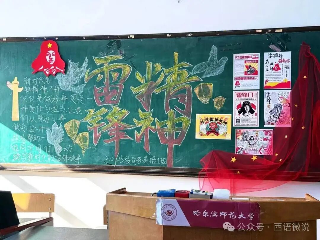 此次主题板报展示活动是西语学院丰富校园文化生活、落实立德树人根本任务的生动实践,既为同学们搭建了展示艺术才华的平台,更引导大家在绘制过程中重温雷锋同志的先进事迹,进一步增强新时代青年的责任感与使命感。同学们纷纷表示,将以此次活动为新的起点,把雷锋精神内化于心、外化于行,将“奉献、友爱、互助、进步”的志愿精神融入日常学习生活,从身边小事做起,主动担当社会责任,让青春在奉献与奋斗中绽放绚丽光彩!