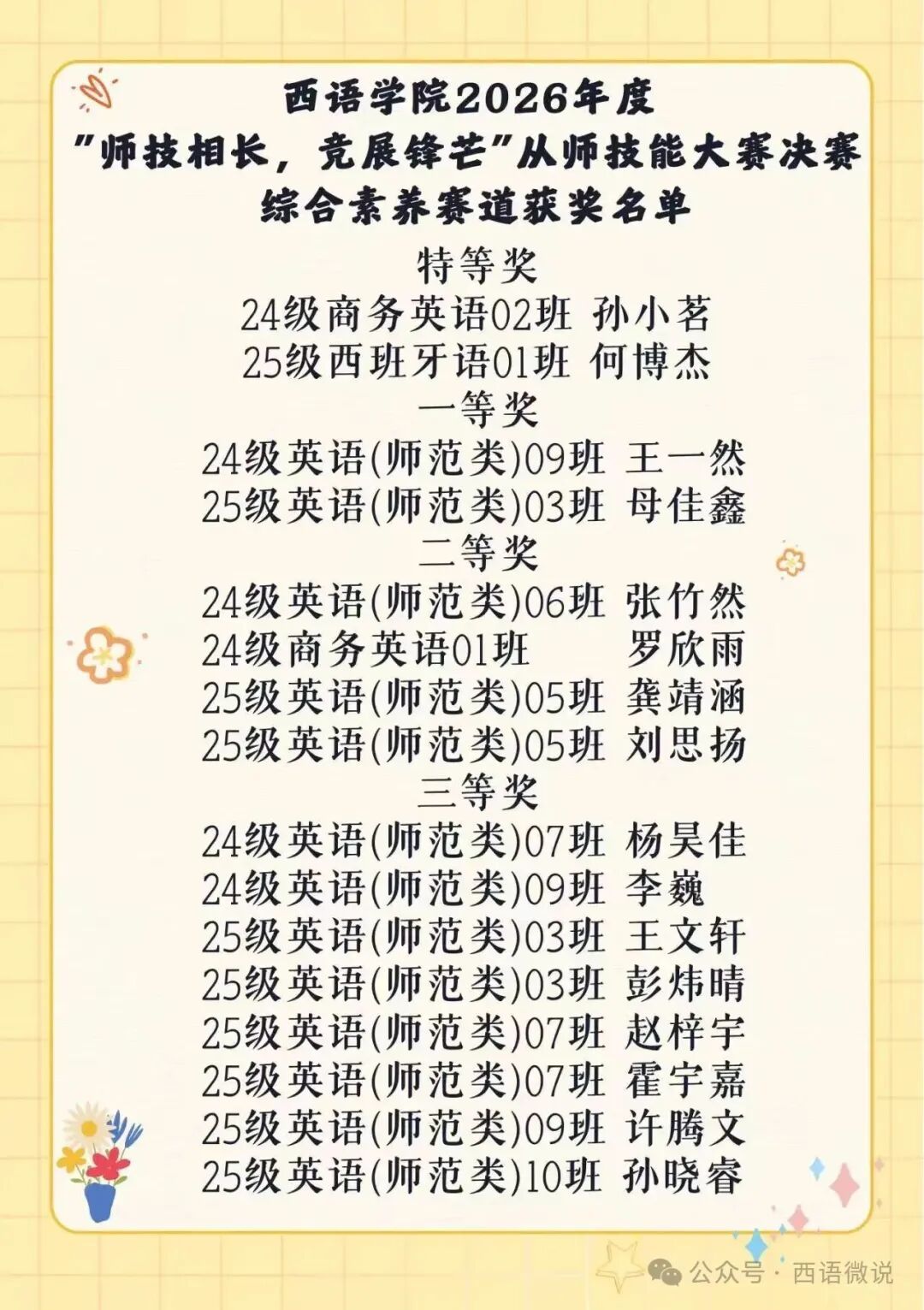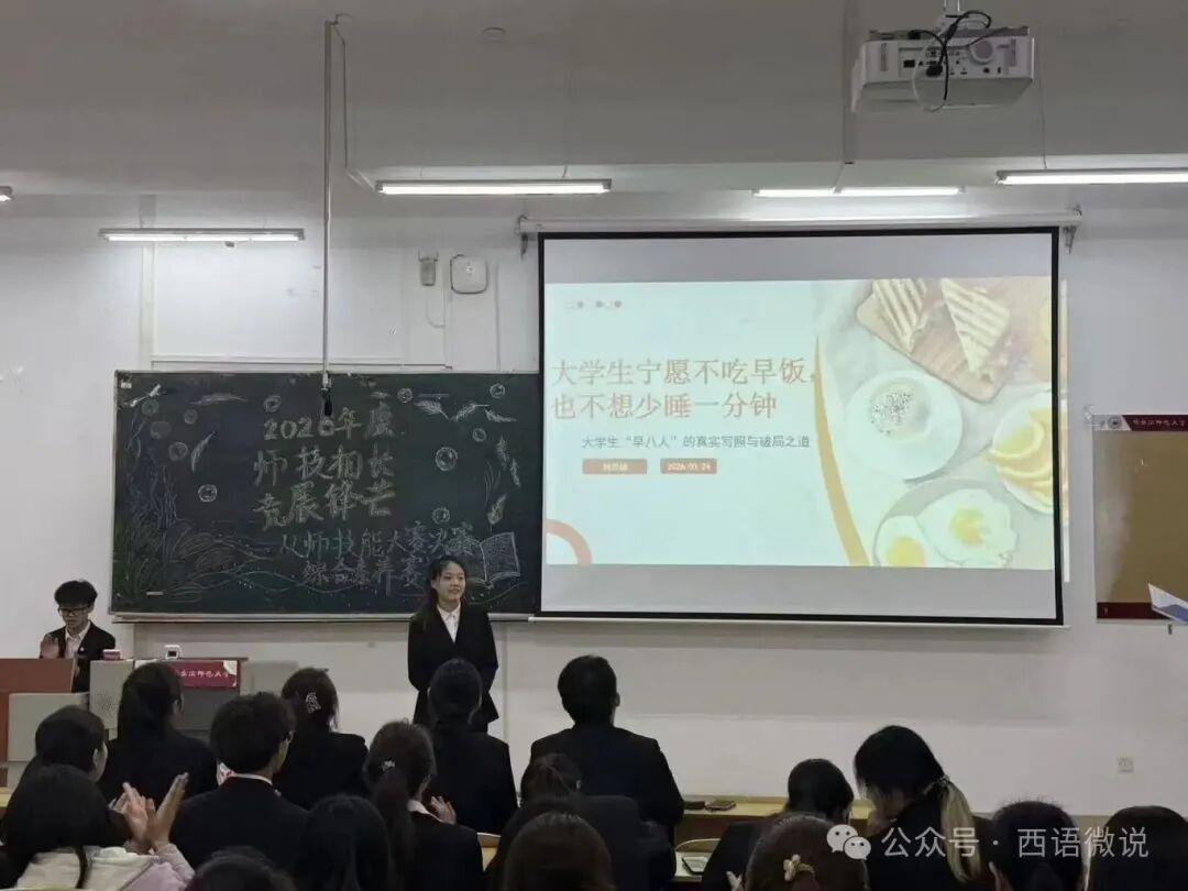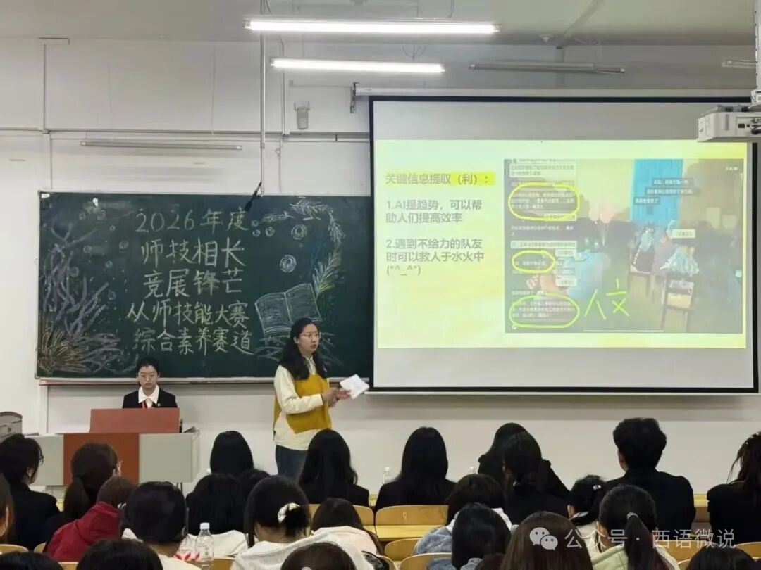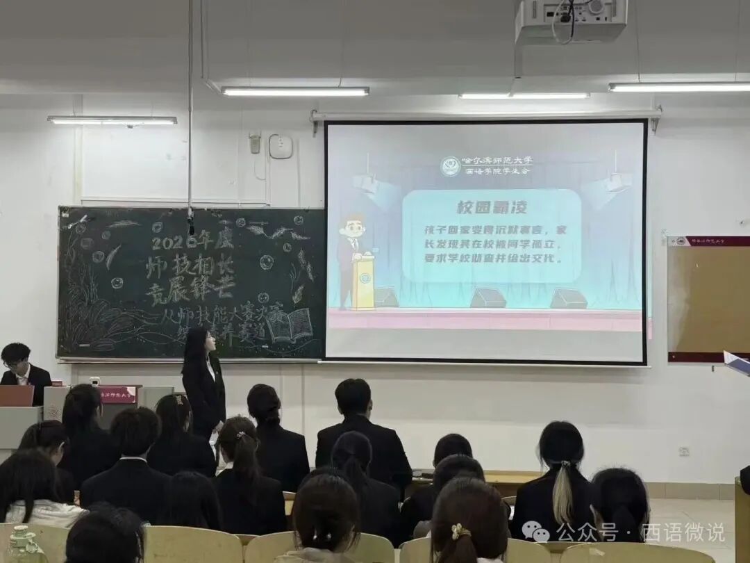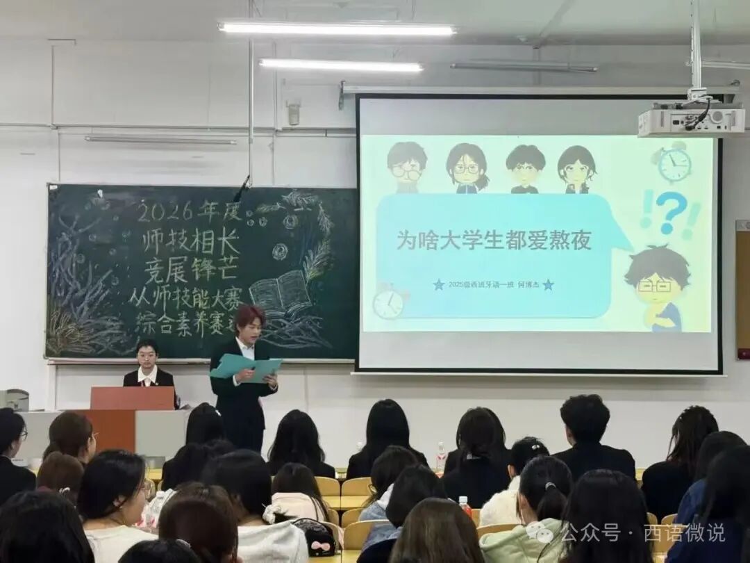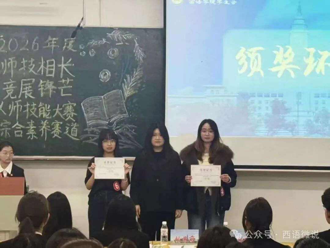 于西语学子而言,从师技能大赛不仅是一场专业能力的比拼,更是一次深耕教育初心、锤炼育人本领的珍贵修行。它以赛场为桥梁,将语言知识的积淀与教学实践的探索紧密相连,让学生跳出书本的理论框架,直面家校的真实情境,这场赛事,不仅是西语学院专业素养的集中绽放,也让同学们增添了对语言的热爱与对教育的赤诚,鼓励西语学子在未来奔赴属于自己的育人远方!