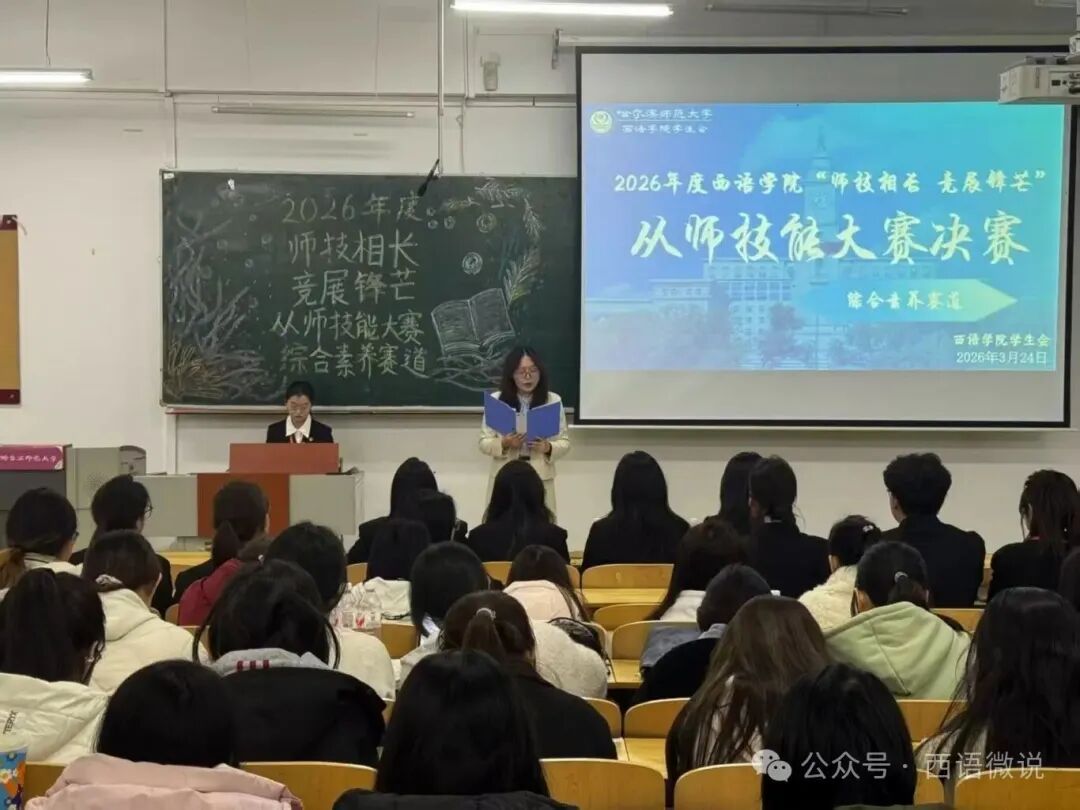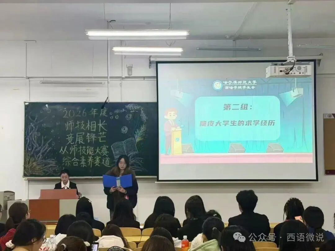 古语云:“学所以益才也,砺所以致刃也。” 为了让西语学子磨砺扎实基本功,打破书本的界限,将同学们的语言能力、课堂掌控力转化为实实在在的专业本领。西语学院学生会特此举办“师技相长,竞展锋芒”从师技能大赛决赛--综合素养赛道。全院学生在竞技中交流,在交流中进步。