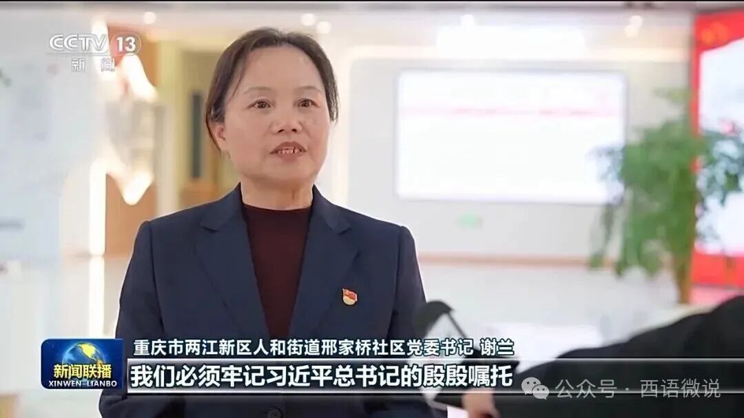 重庆市两江新区人和街道邢家桥社区党委书记谢兰:我们必须牢记习近平总书记的殷殷嘱托,深入学习四中全会精神,以“民生无小事 枝叶总关情”的信念践行初心,强化基层党组织的引领作用,固本强基、凝聚人心、勇于担当,让人民群众有更多获得感、幸福感、安全感。