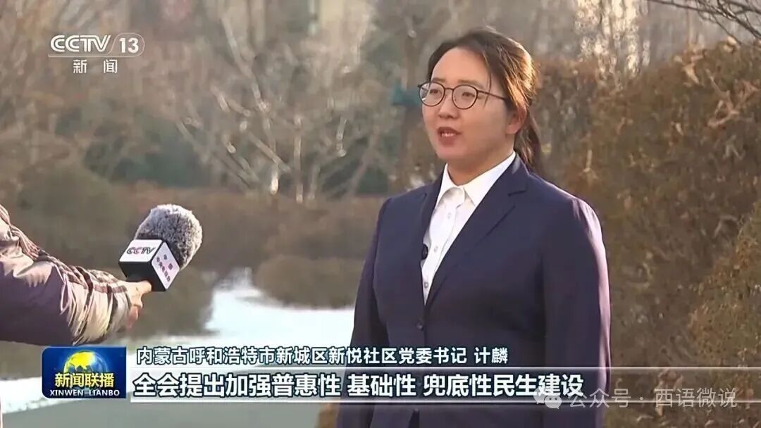 内蒙古呼和浩特市新城区新悦社区党委书记计麟:全会提出加强普惠性、基础性、兜底性民生建设,解决好人民群众急难愁盼问题,让我们深深感受到习近平总书记的为民情怀。下一步,把全会精神转化为服务群众的实际行动,精准对接居民需求、高效解决百姓急难愁盼问题,努力建好居民满意的幸福家园。